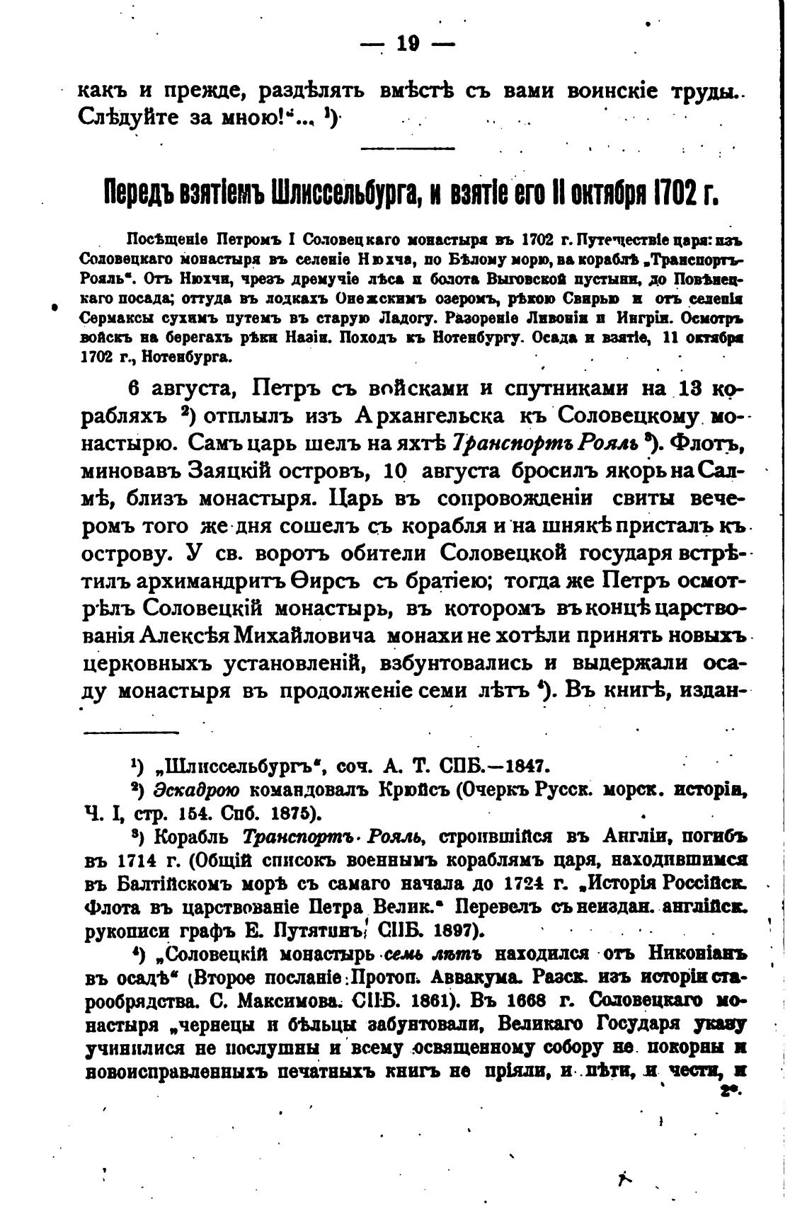 Петрмъ 1 Соловецкаго монастыря 1702 г. Путетеств1е царя: изъ