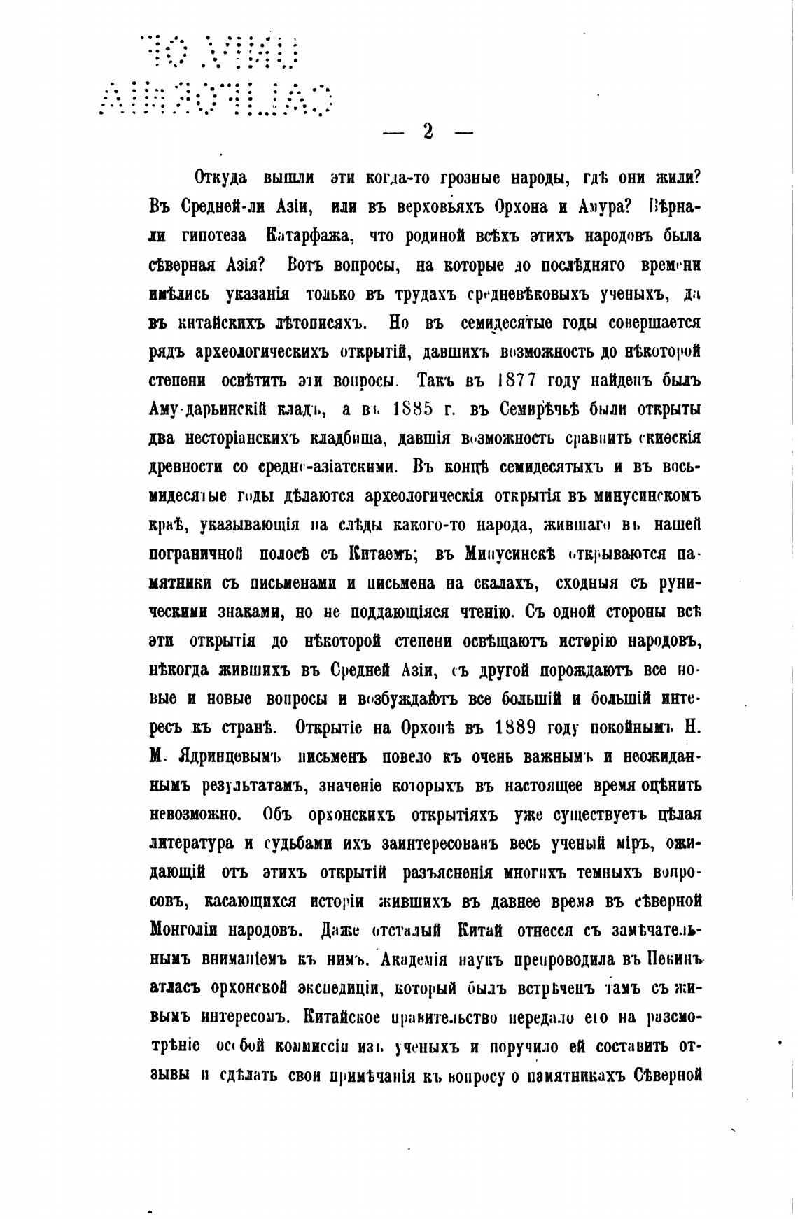 Въ Средней-ли Аз(и, иди въ верховьяхъ Орхона и Амура? 1Њрна-