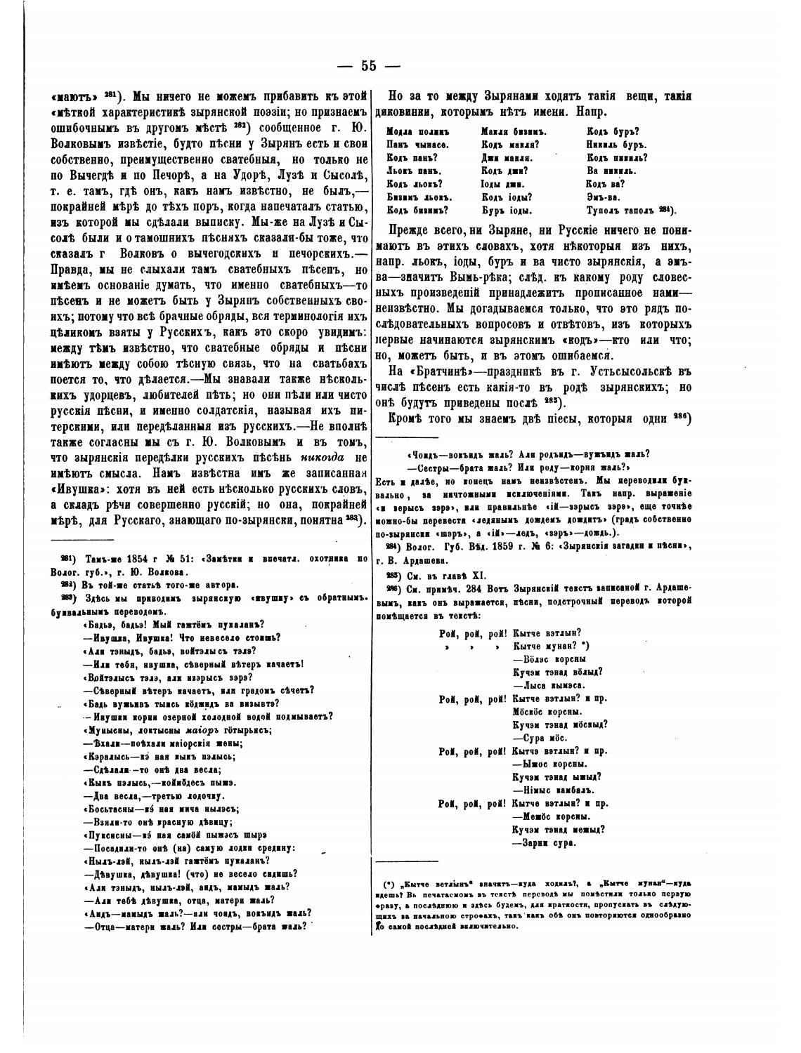 первые начинаются зырянскимъ или что;
