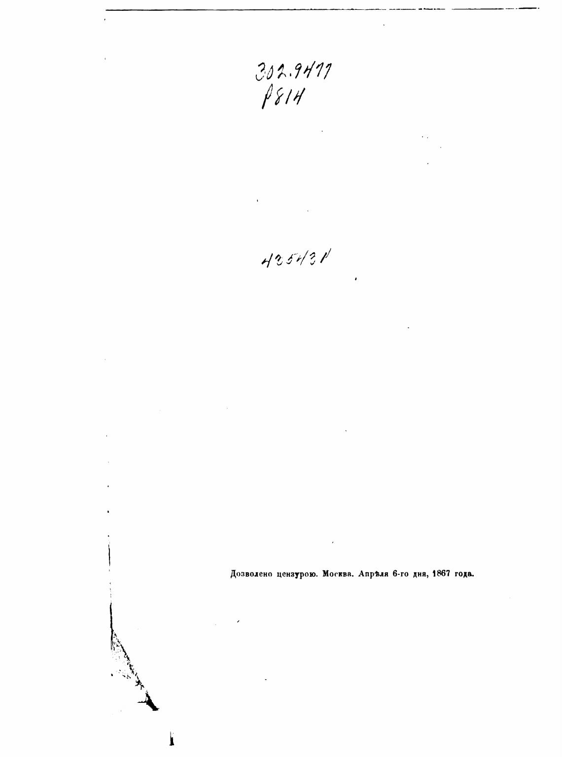 Дозволено цензурою. Москва. 6-го Дня, года.