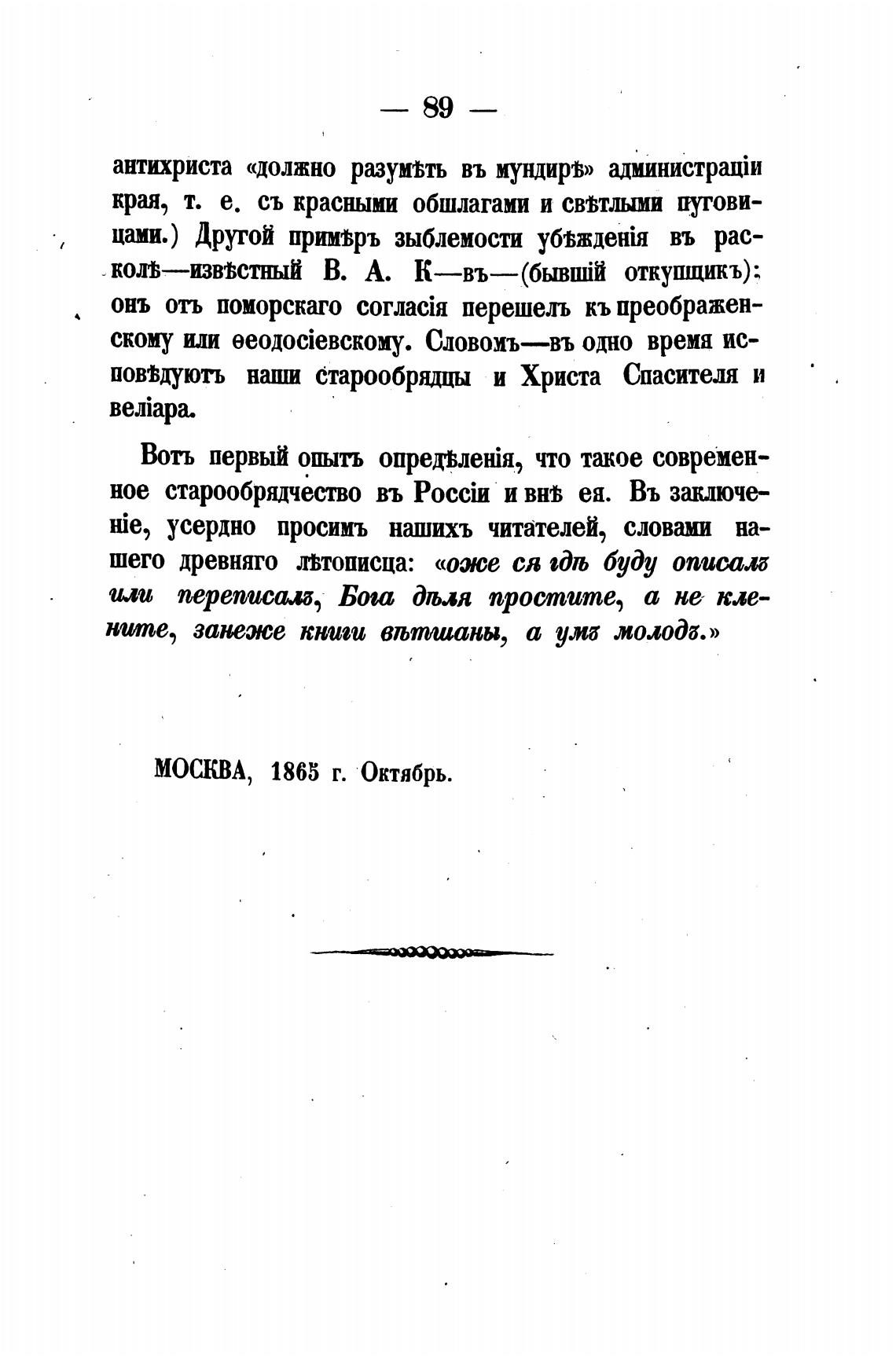 ное старообрядчество въ и ея. Въ заключе-