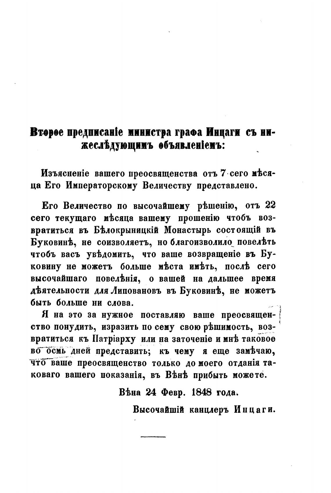Втюрое предписан1е министра граоа Инцаги съ ни-