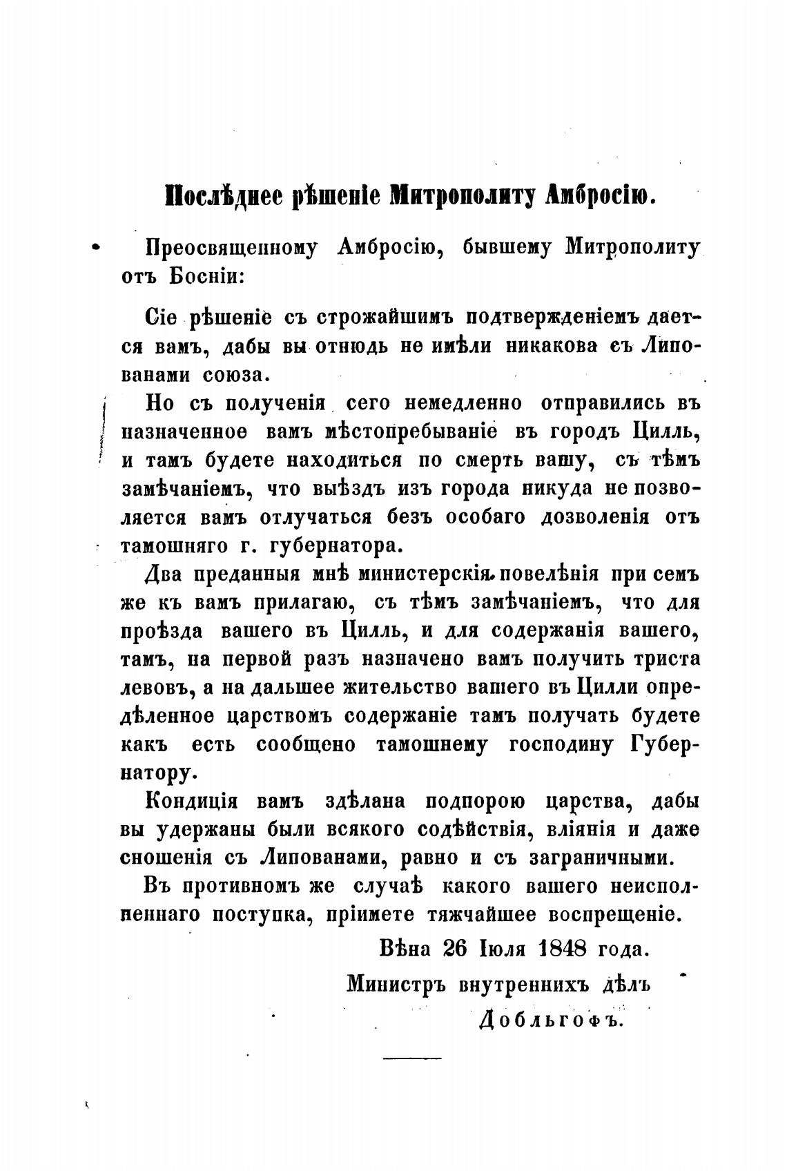 ПослЫнее 1Њшеи1е Митрополиту Алброс\ю.