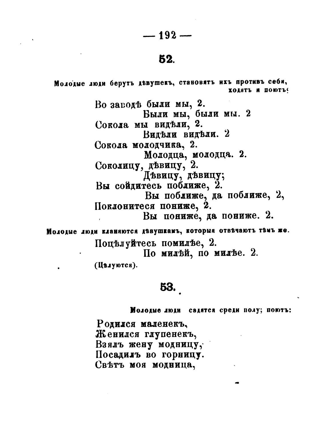 Моло•дые люди берутъ дввушекъ, становить ихъ противь себя,