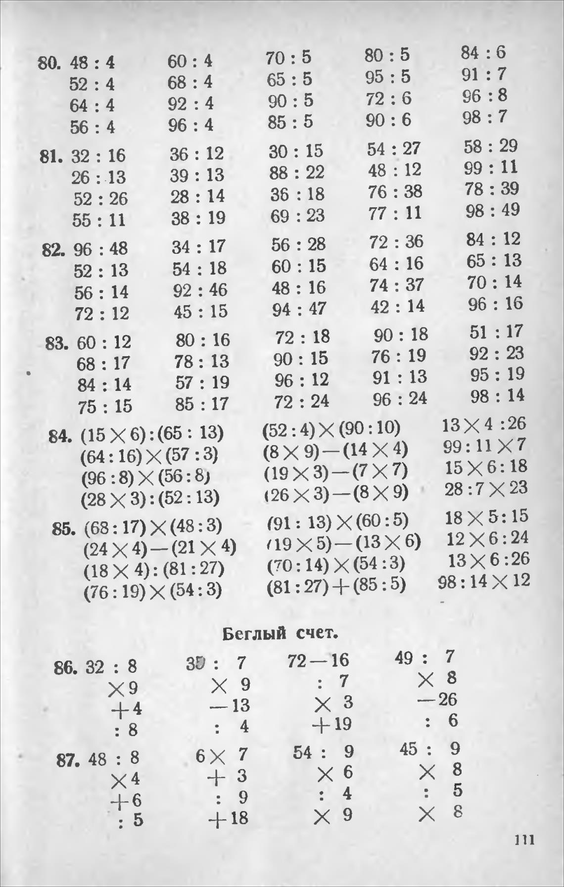 Беглый счет.