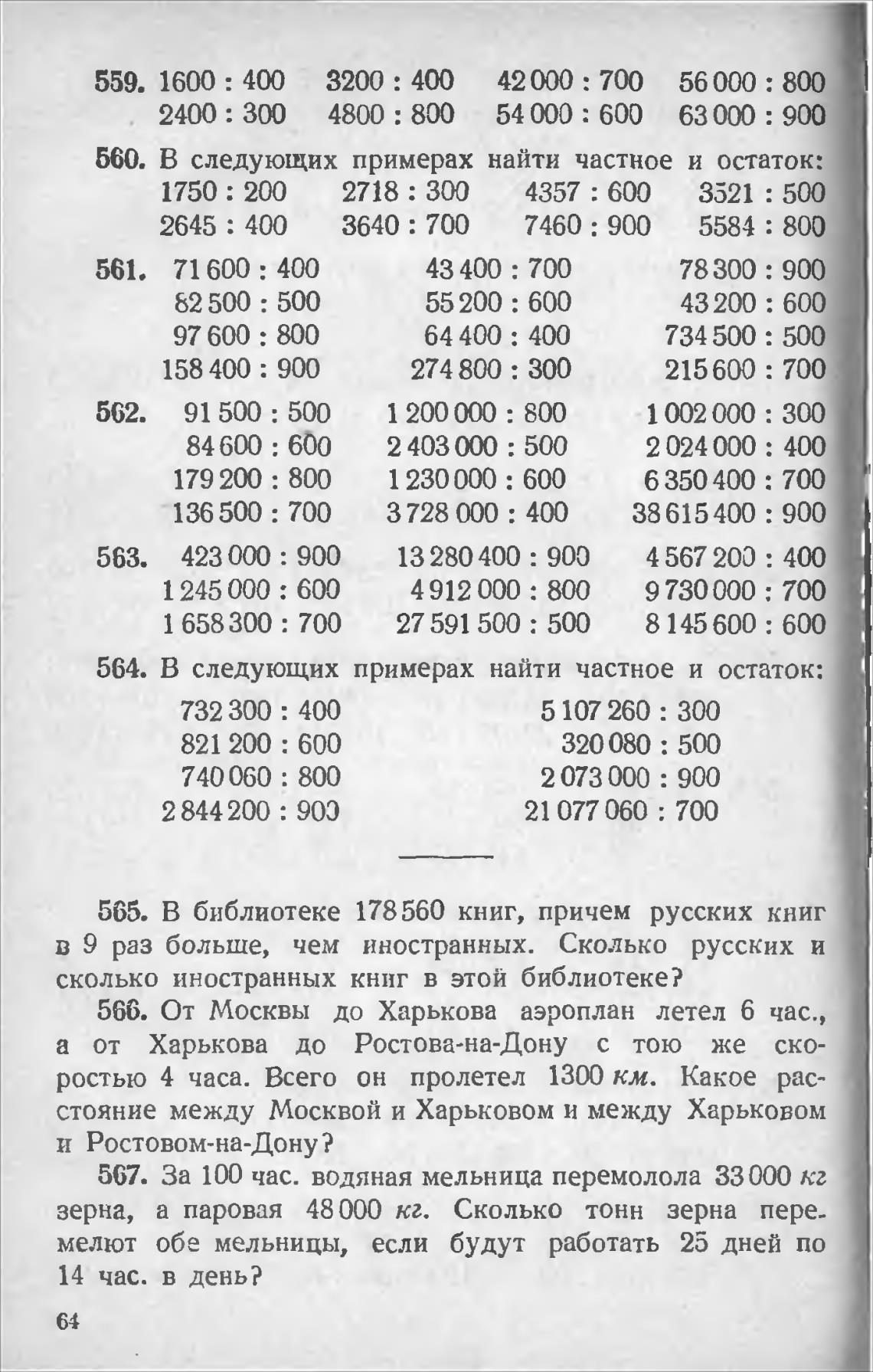 560. В следующих примерах найти частное и остаток: