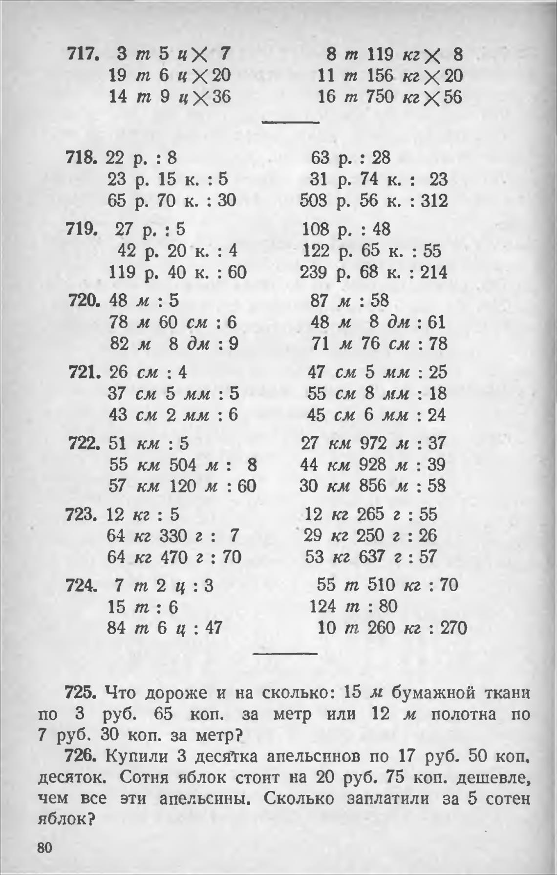 726. Купили З десятка апельсинов по 17 руб. 50 коп.