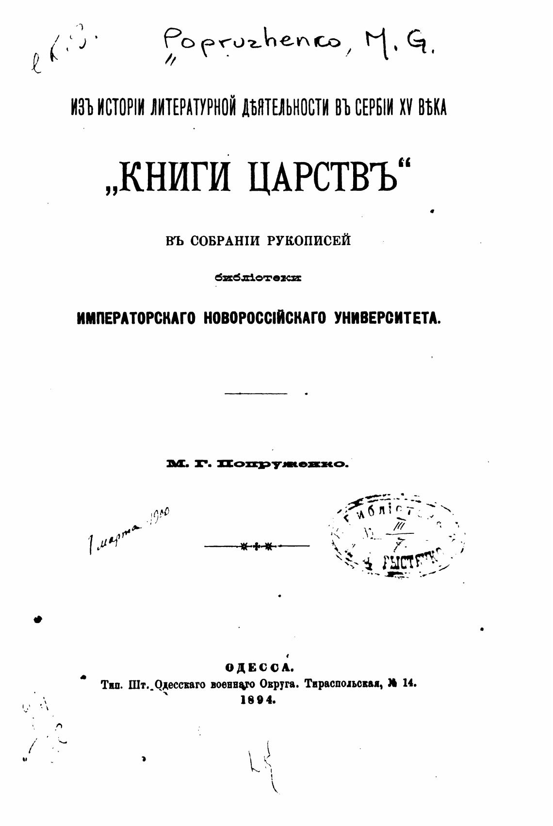 ИМПЕРАТОРСКАГО НОВОРОССИЯСКАГО УНИВЕРСИТЕТА.