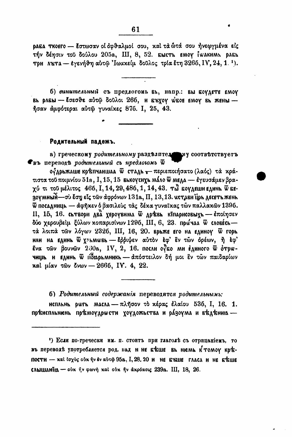 1) Ени по-гречески им. п. стоить при глаголћ съ 0TpHI(aHieMb, то