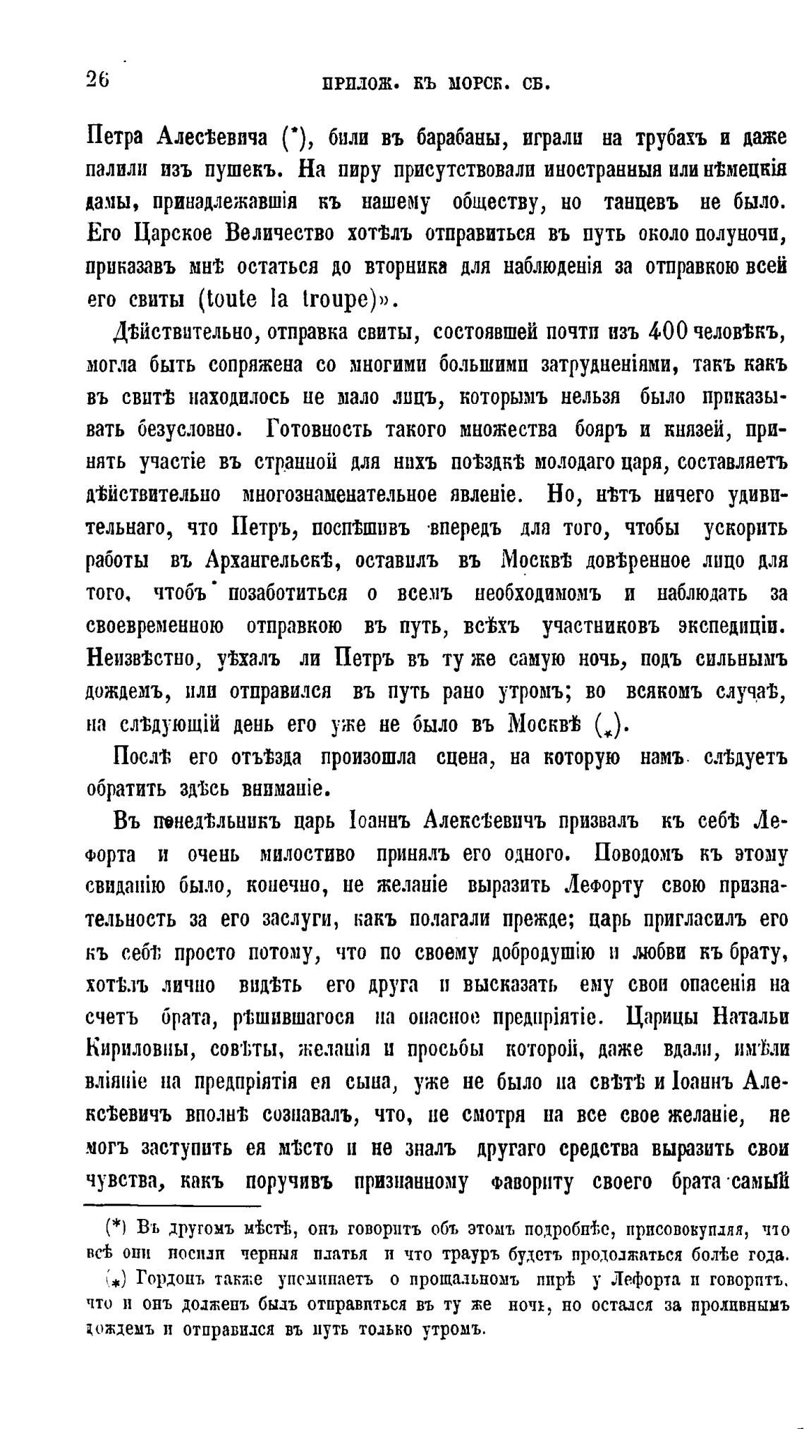 Гордоцъ также упоминаетъ о прощальномъ пир{; у Лефорта п товорптъ.