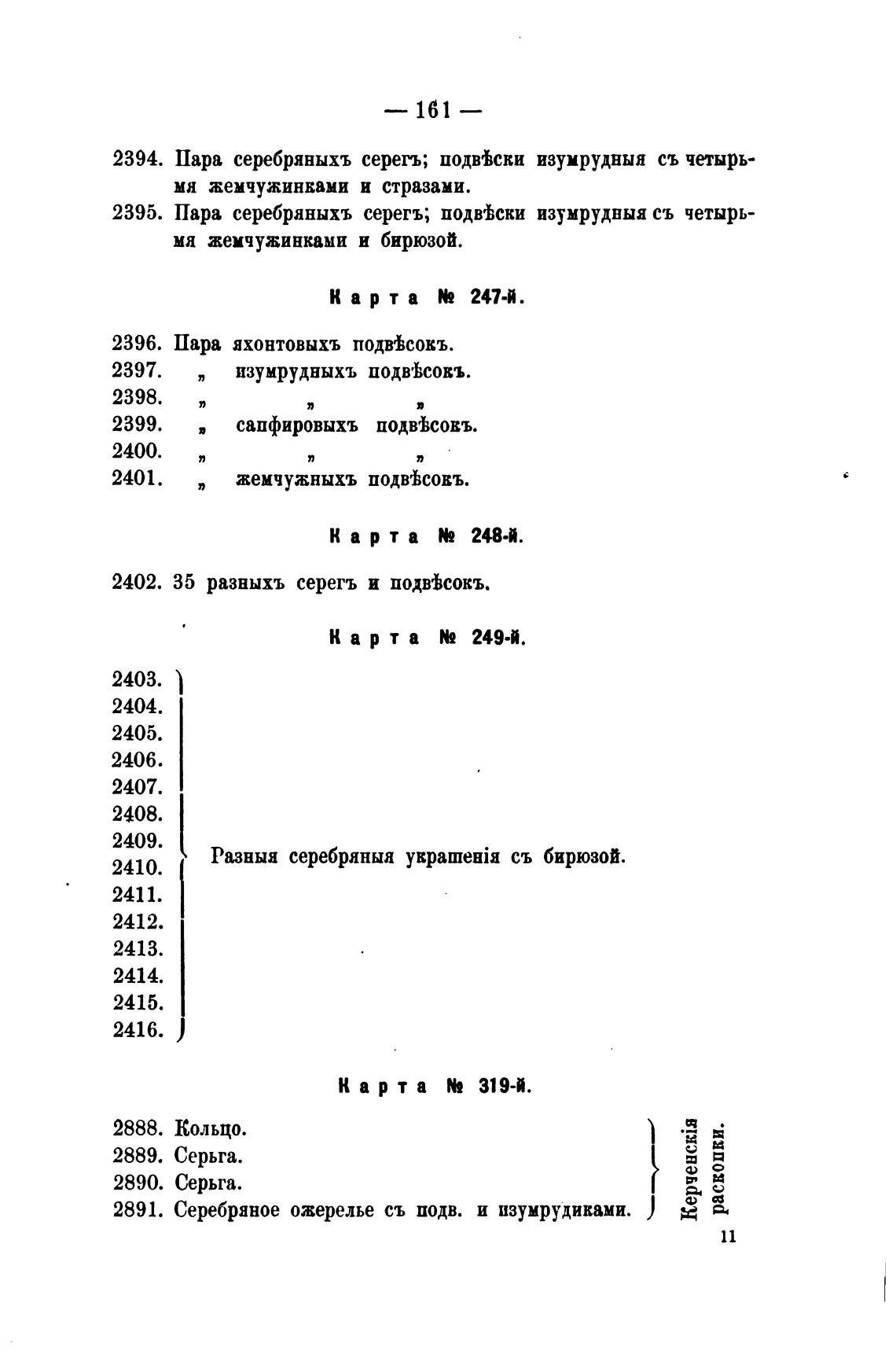 Пара серебряныхъ серегъ; подйски изумрудныя съ четырь-