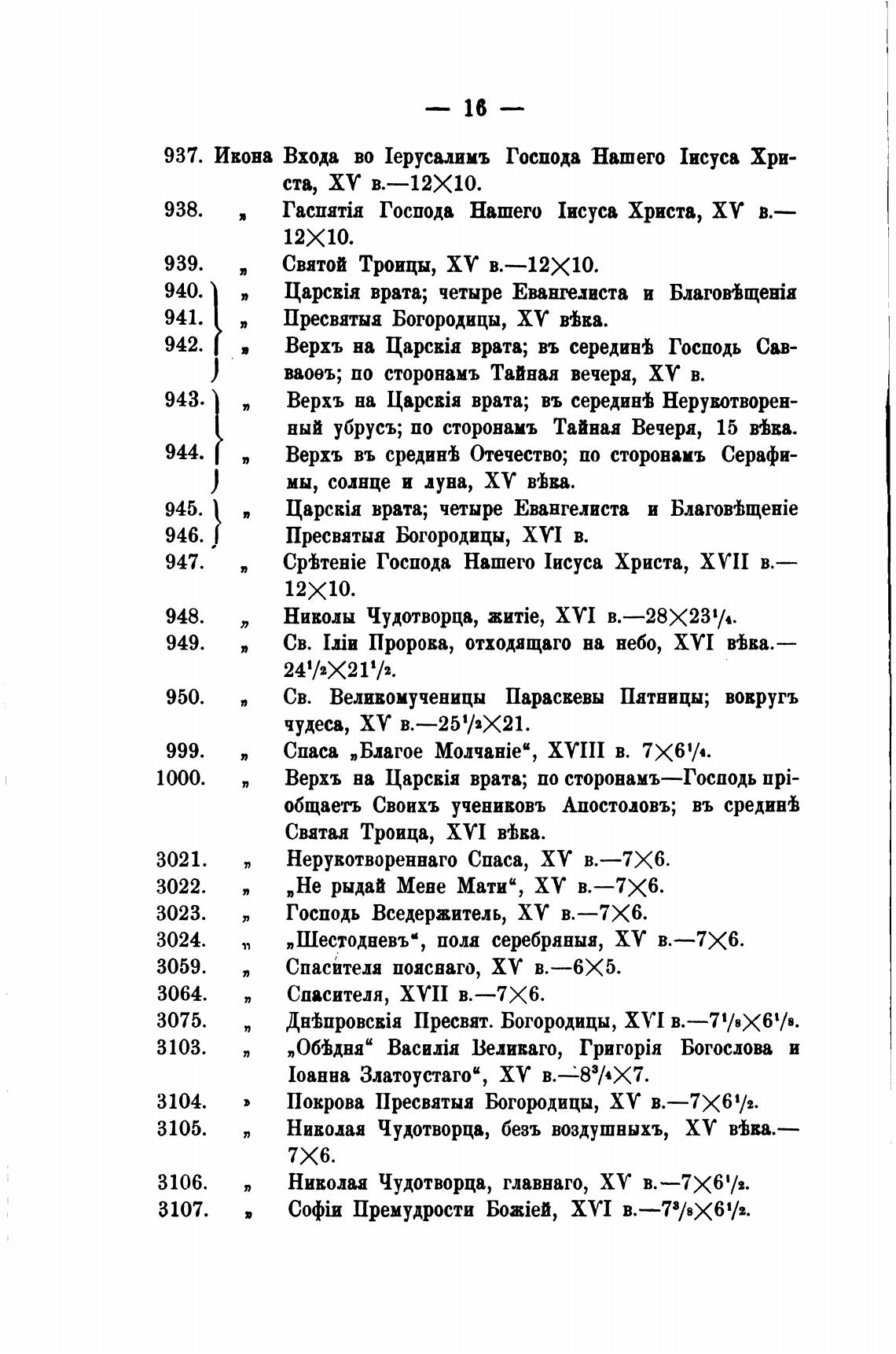 Николая Чудотворца, главнаго, ХУ в.—7Х6'/2.