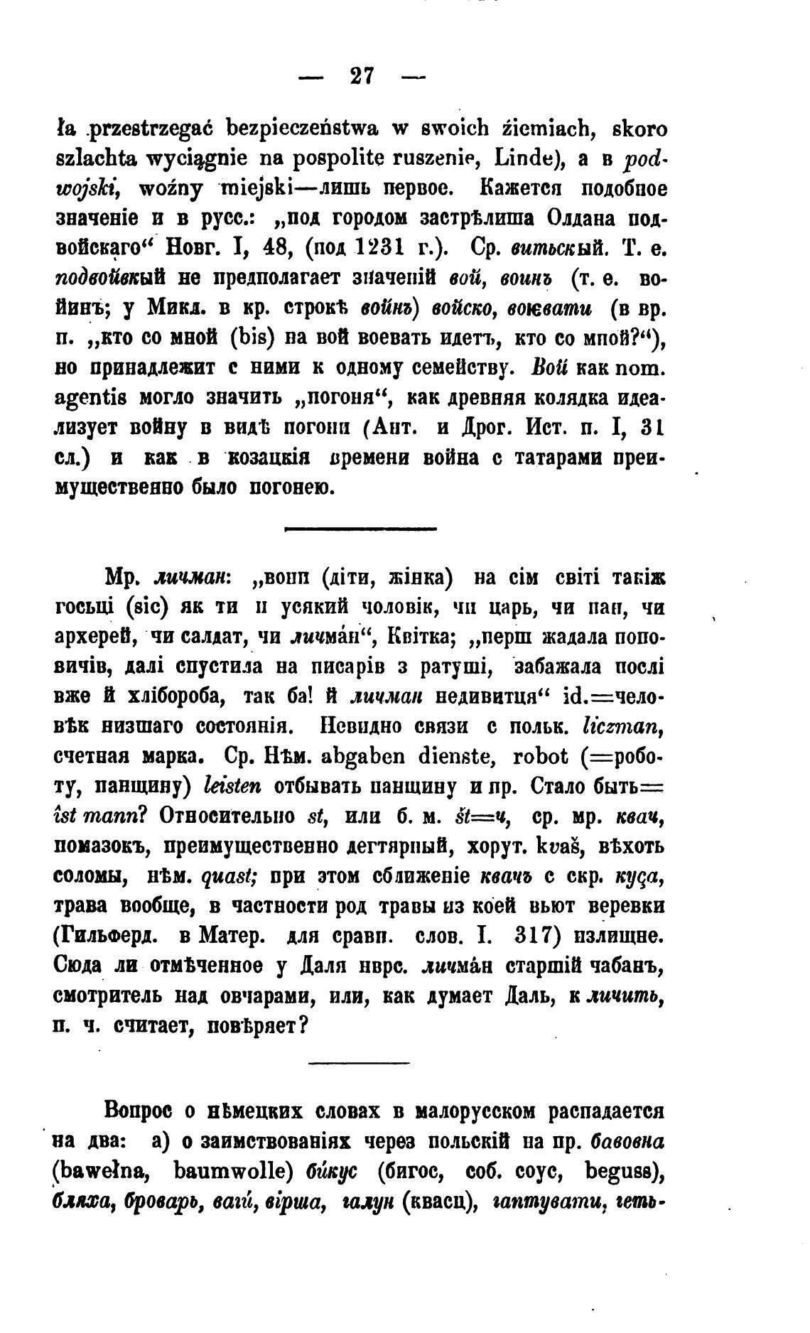 Вопрос о ввмецких словах в малорусском распадается