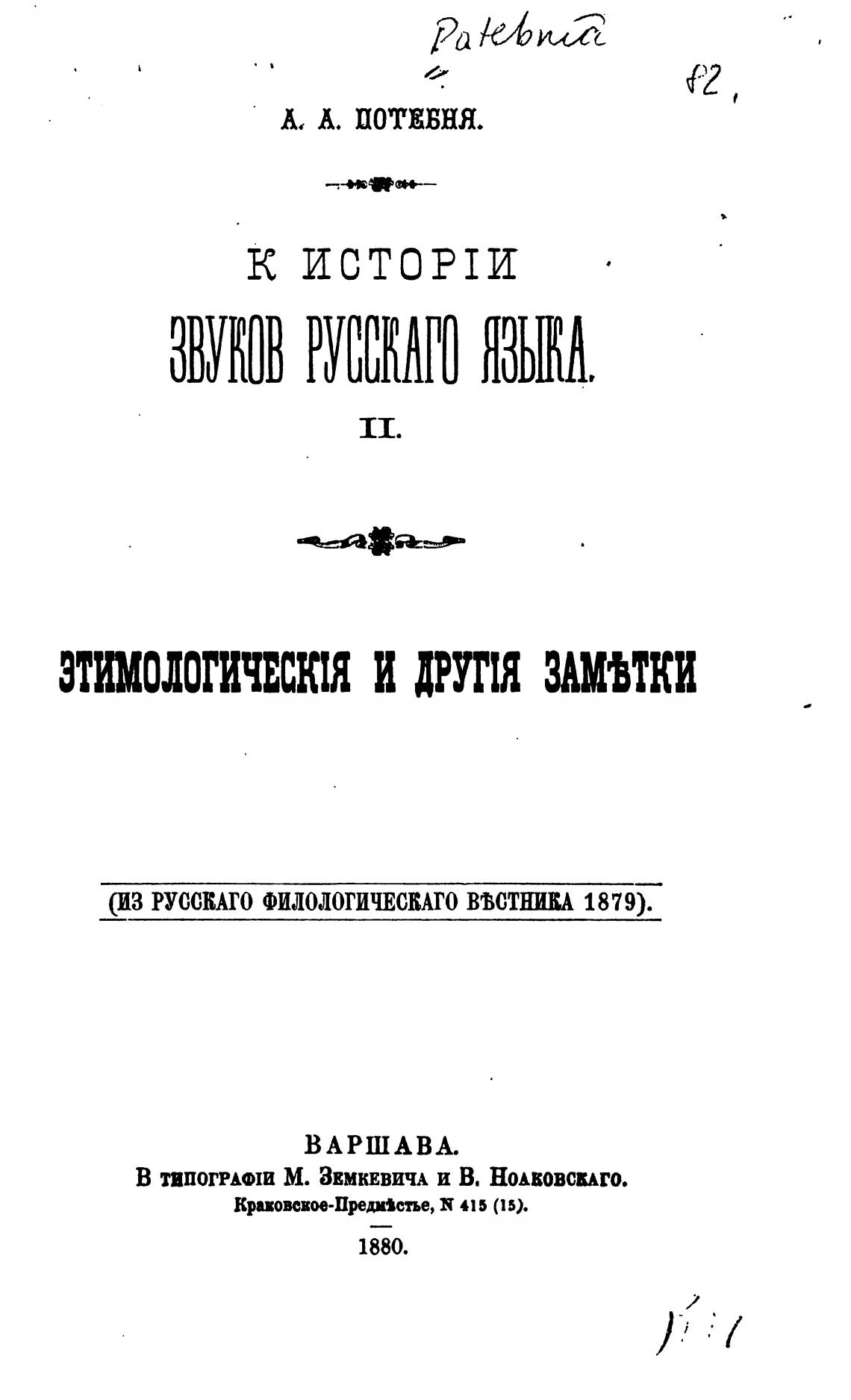 (ИЗ РУССКАГО ФИЛОЛОГИЧЕСКАГО ВВСТЕА 1879).