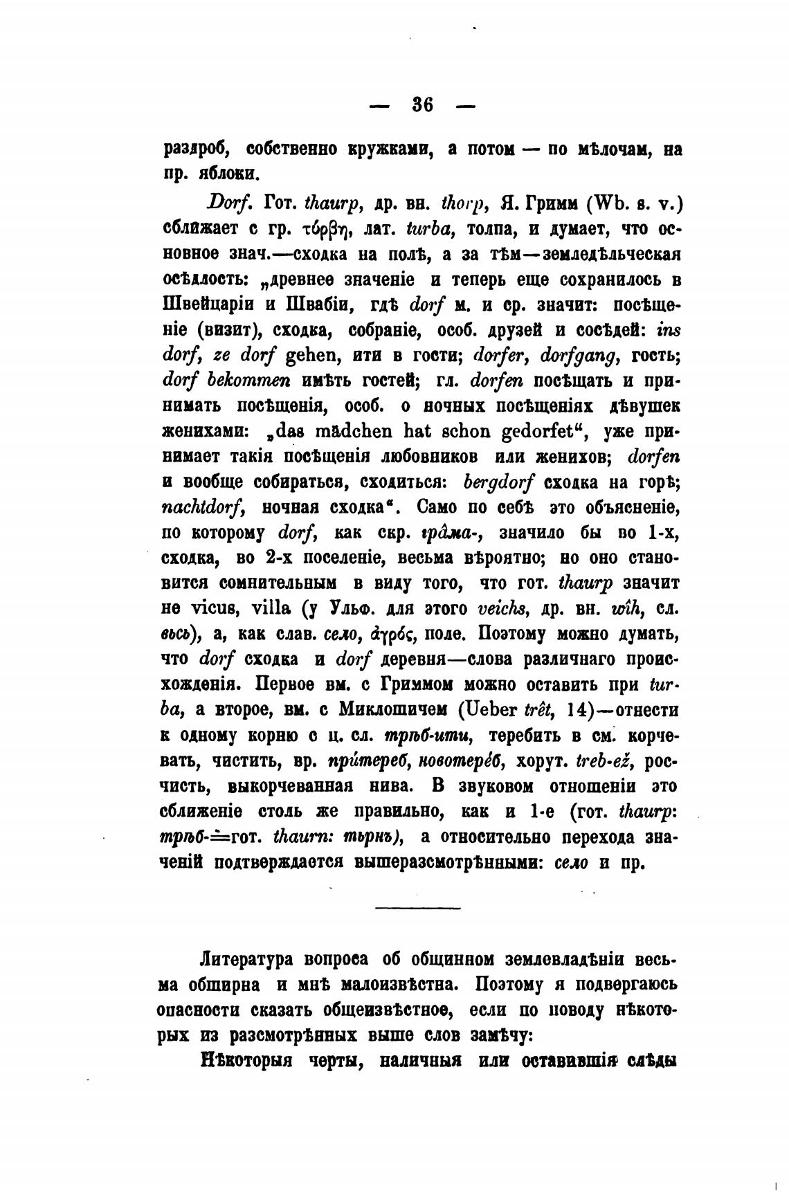 Dorf. Гот. thaurp, др. вв. thorp, Я. Гримм (Wb. в. v.)