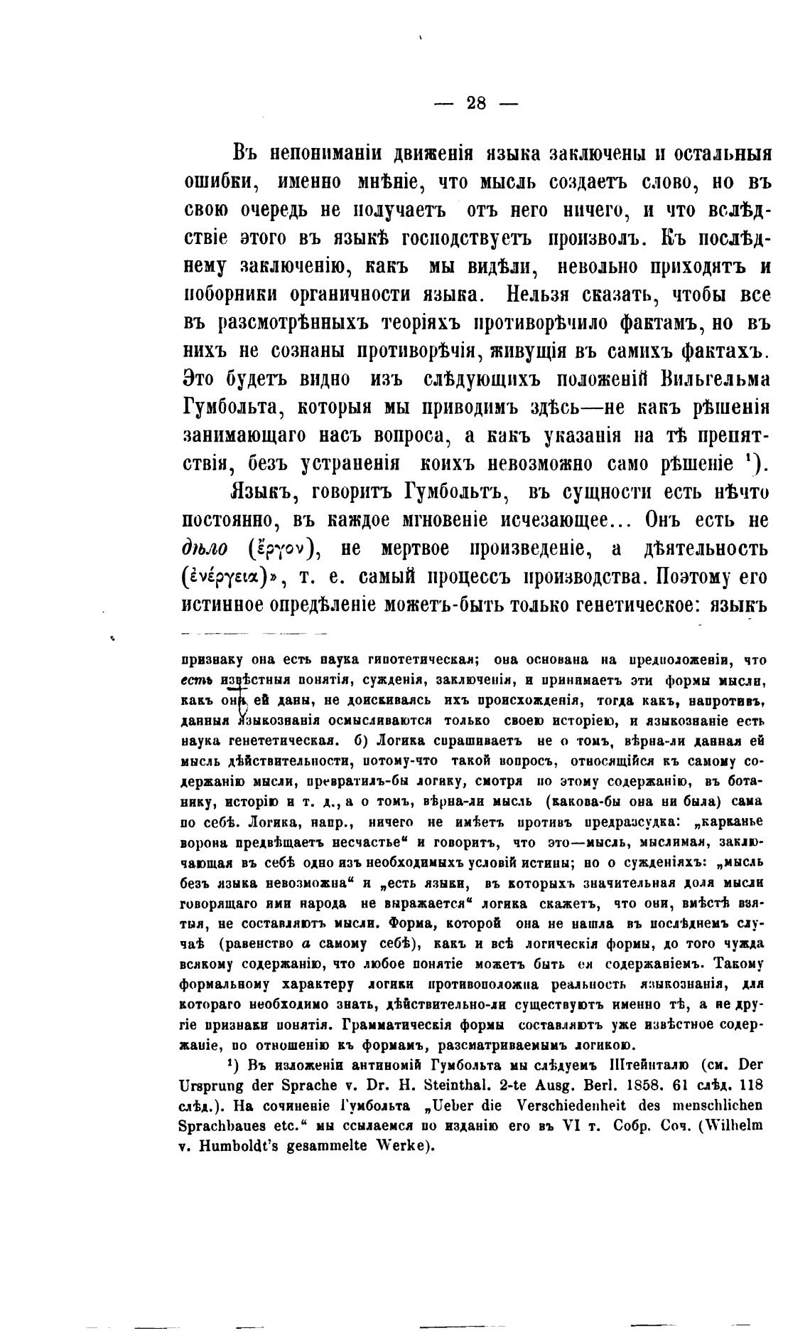 Языкъ, говорить Гумбольтъ, въ СУЩНОСТИ есть Н'Вчто