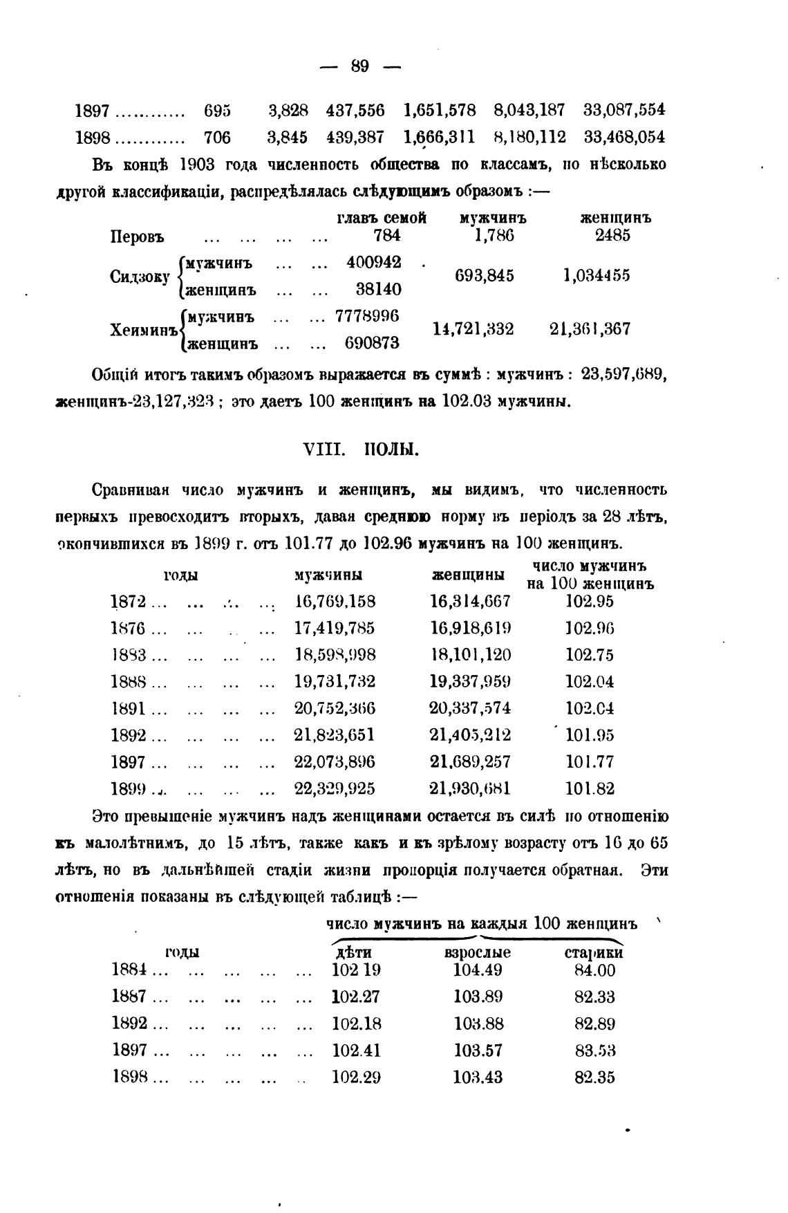окончившихся въ 1899 г. отъ lOl.77 до 102.96 мужчинъ на 100 женщинъ.