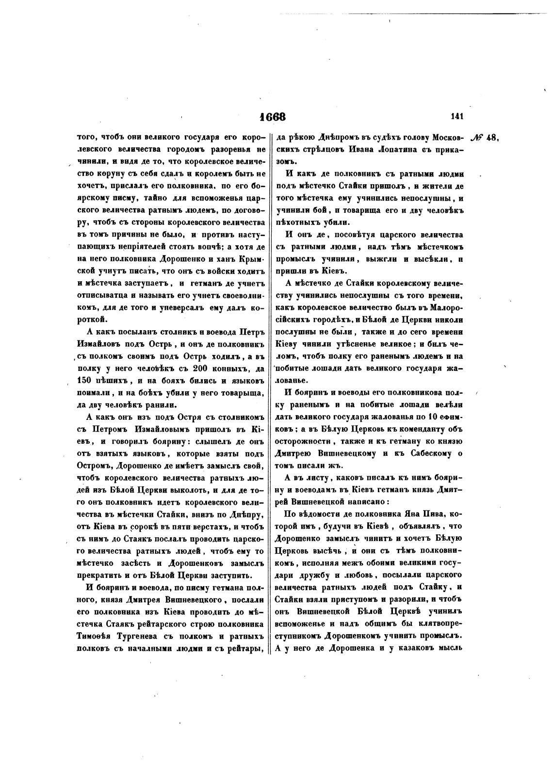 Дорошенко замысхь чинить и хочетъ Б•Ьлую