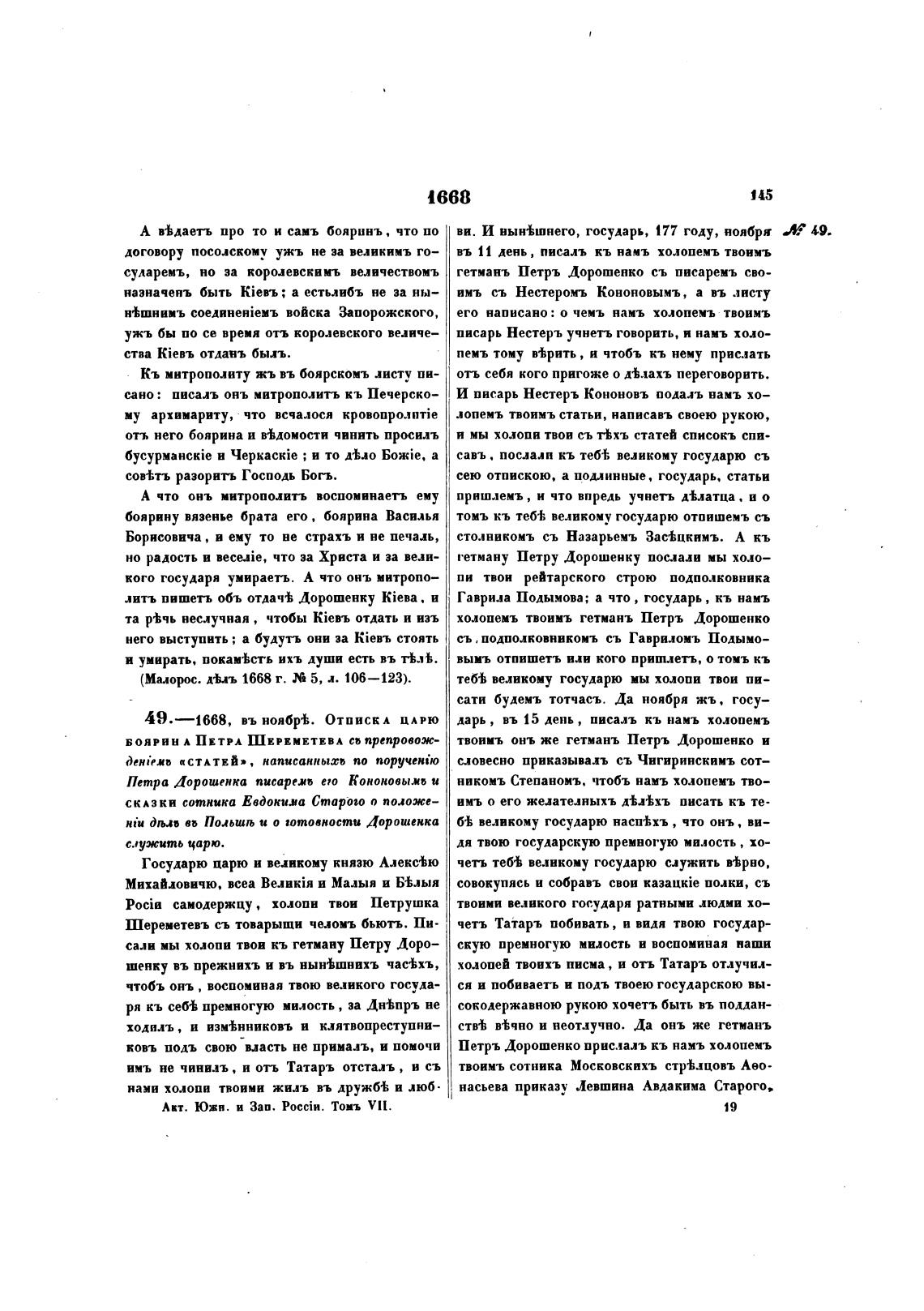 49.—1668, въ ноябр±. Отпискл ЦАРЮ