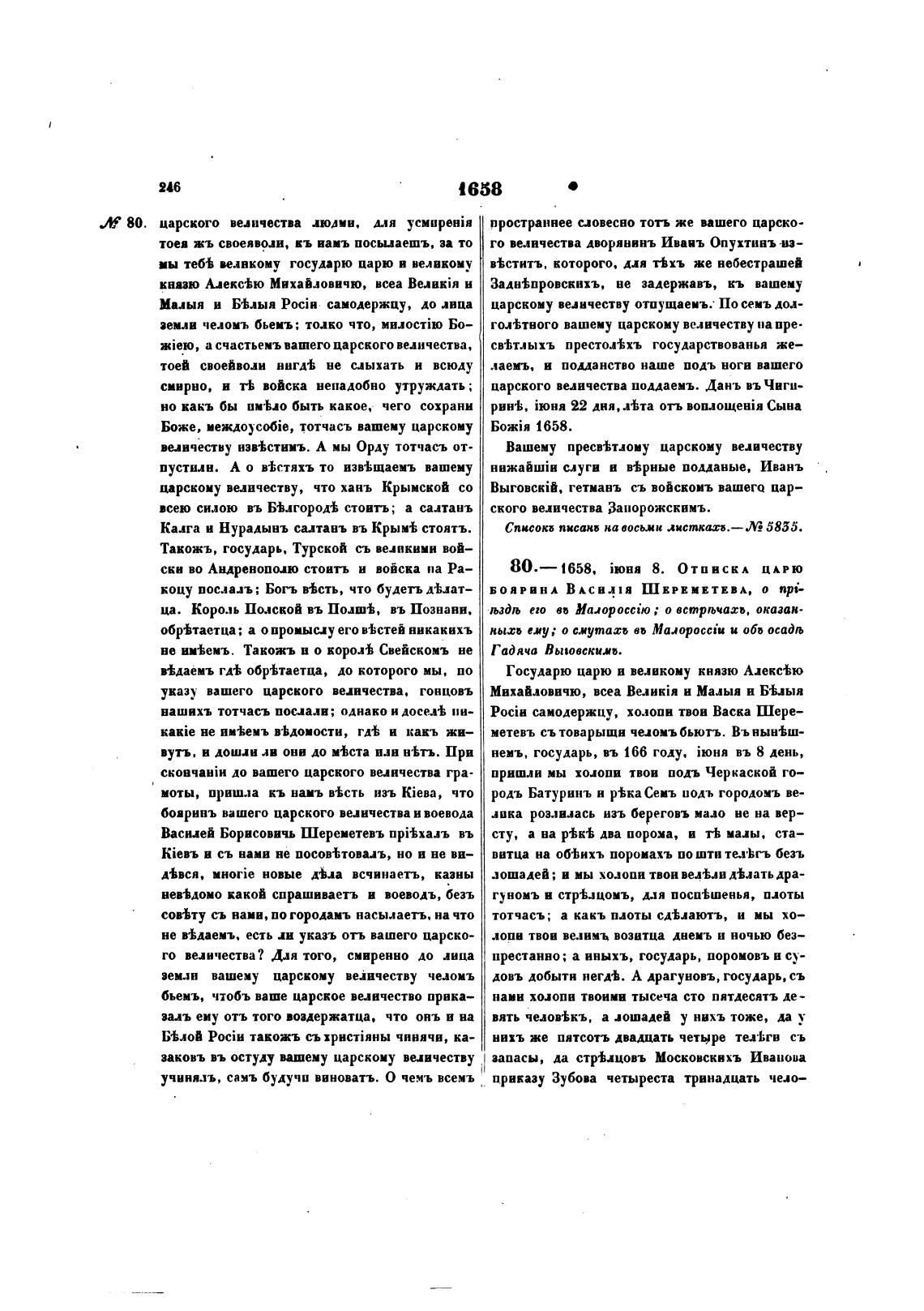 80.— 1658. 8. ОТПИСКА ц КРЮ
