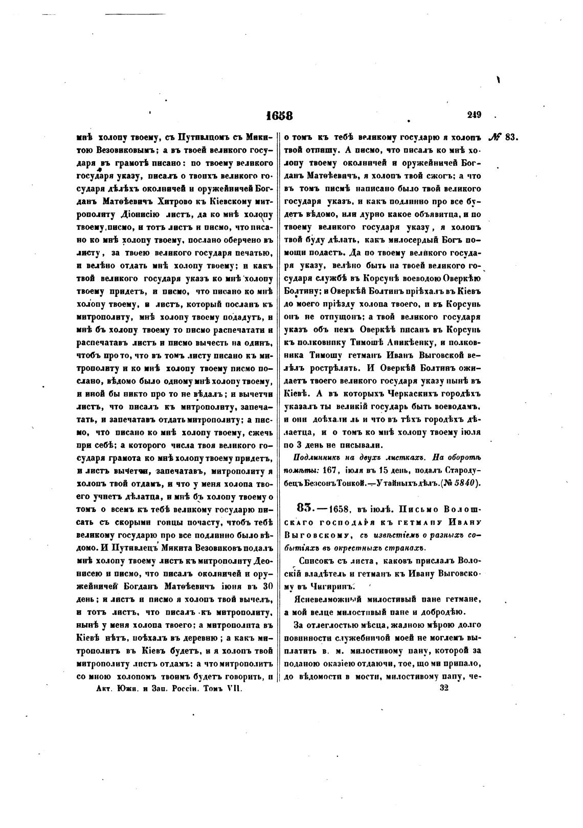 85.—1658, въ Письмо Волош•