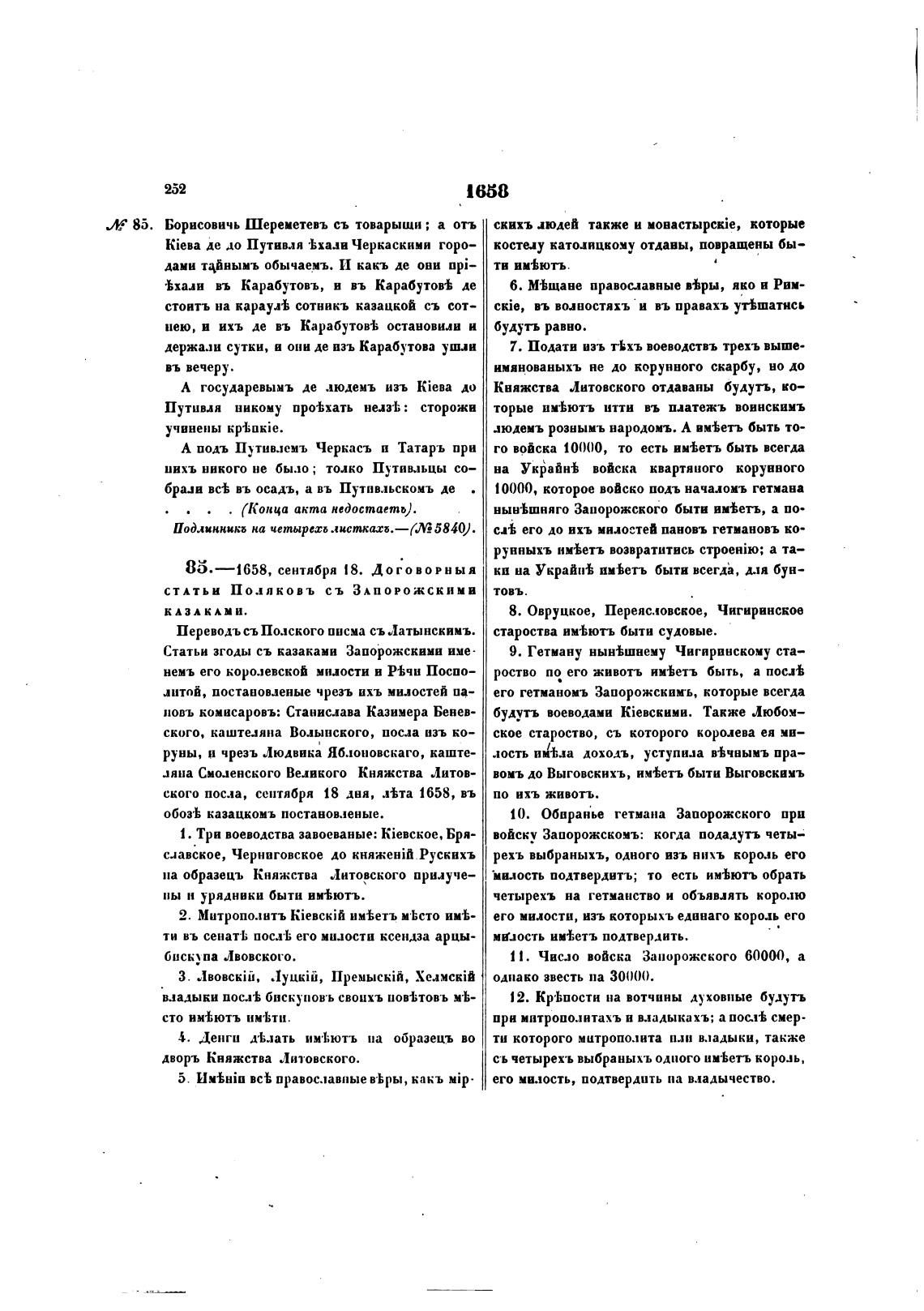 83—1658, сентября 18. Договорныя