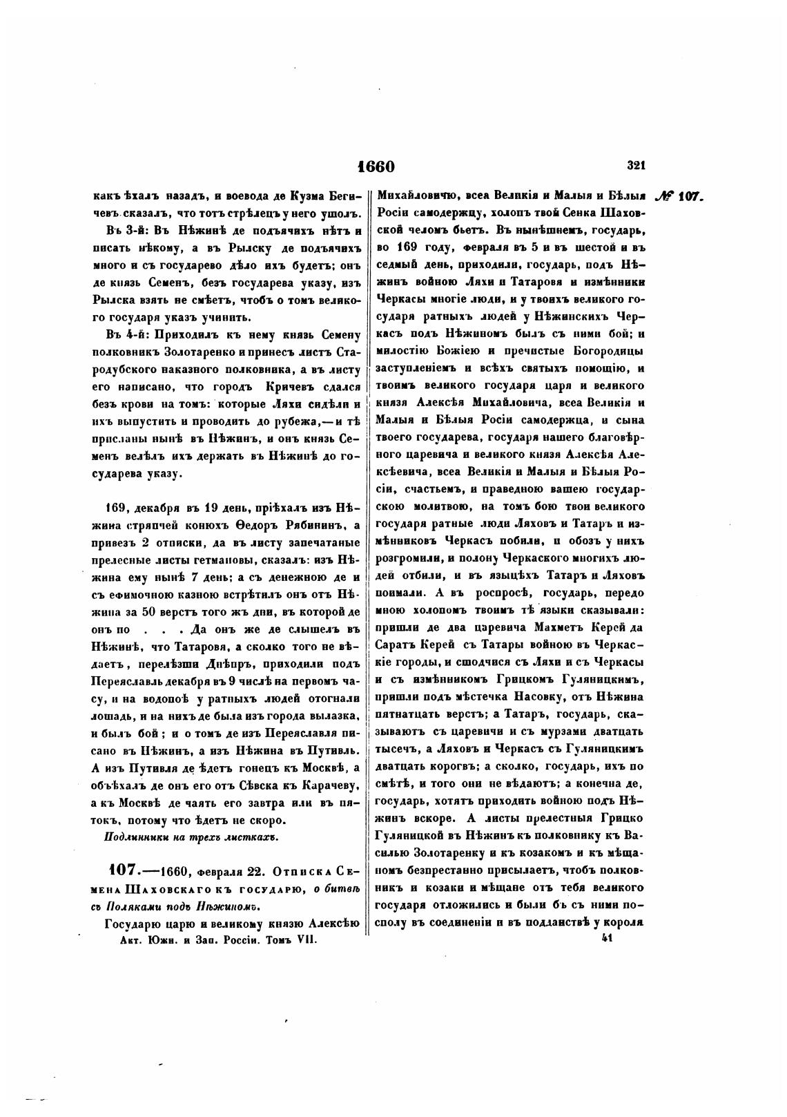 107.—1660, Февраля 22. ОТПИСКА СЕ—