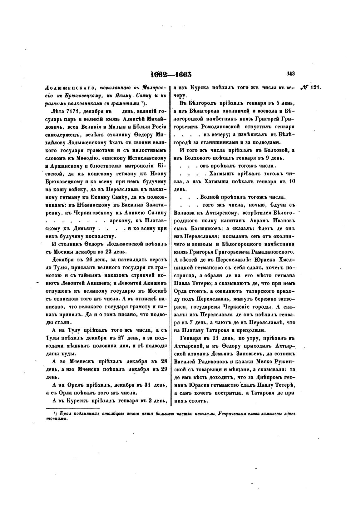 а взъ Курска по•Ьхахь того жъ чвсла въ вее 121.