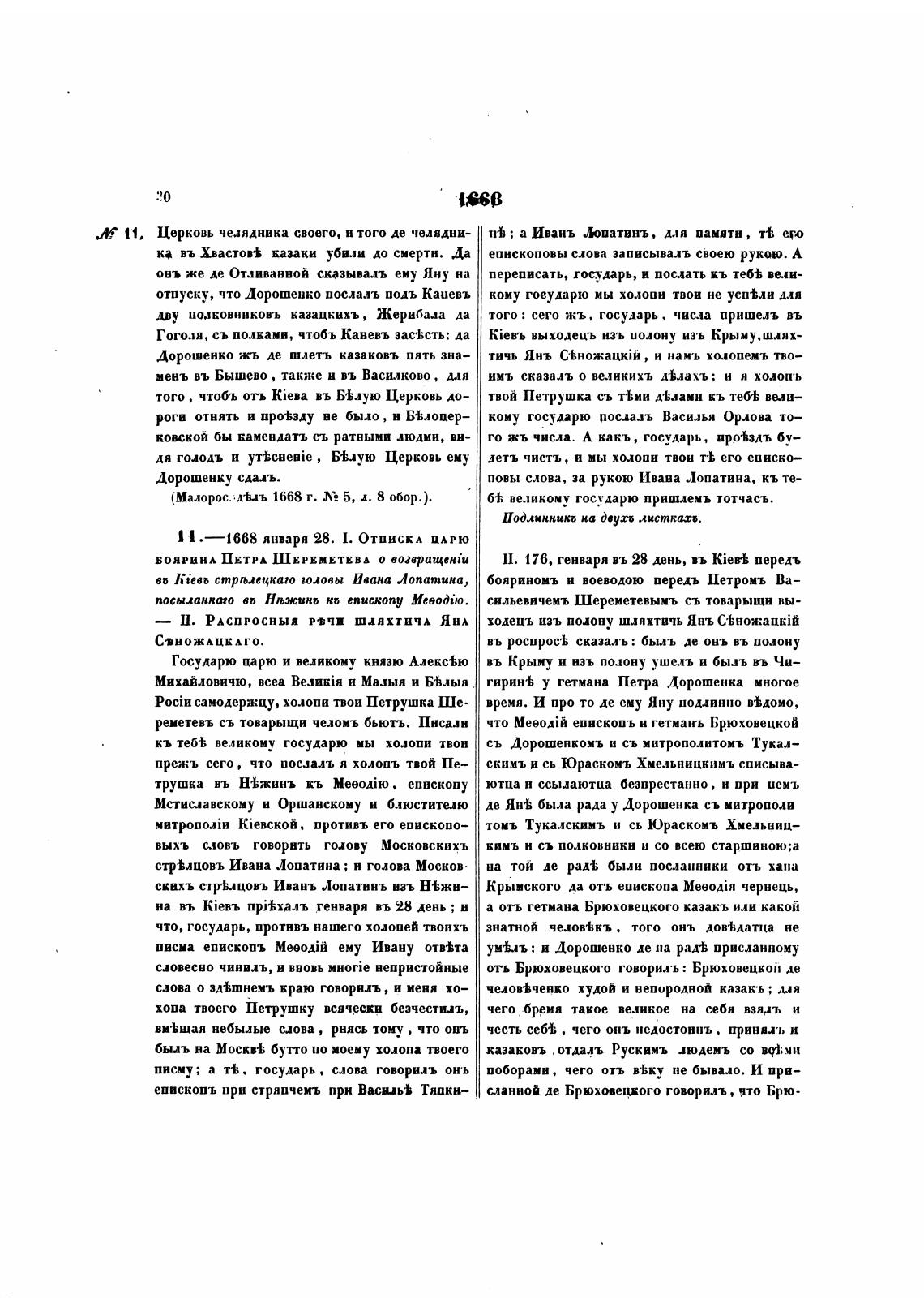 1 1 • 1668 января 28. 1. ОТПИСКА ЦАРЮ