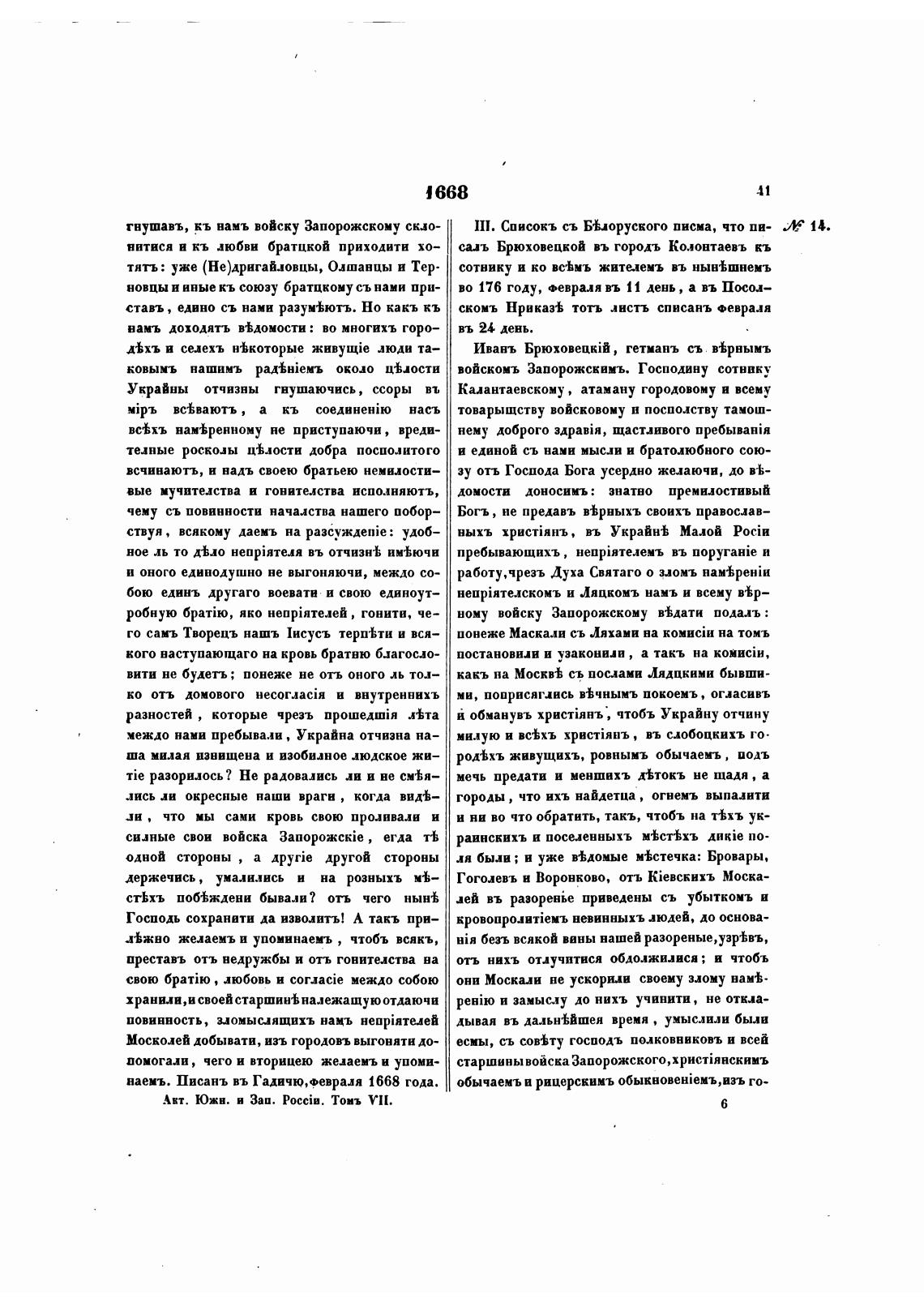 наеиъ. Писань въ Гадичю,февраля 1668 года.