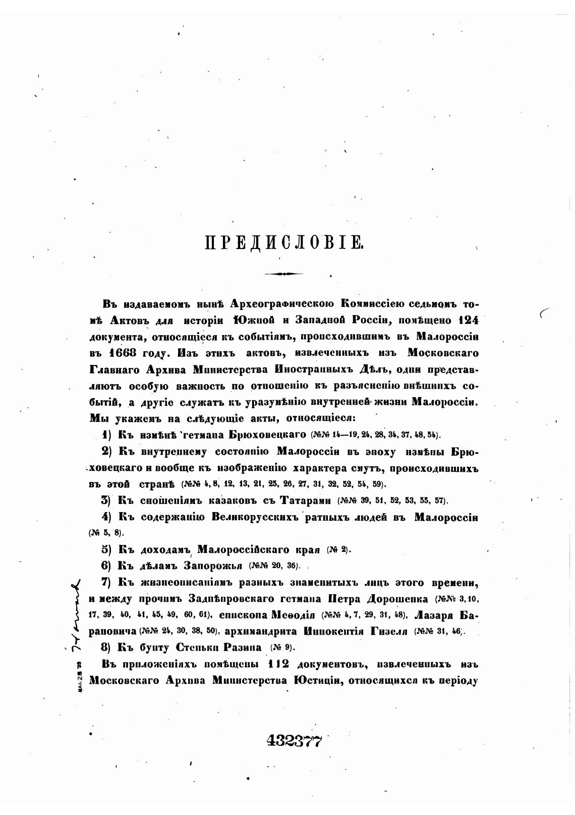Въ попвщепы 112 документовъ, извлеченпыхъ изъ