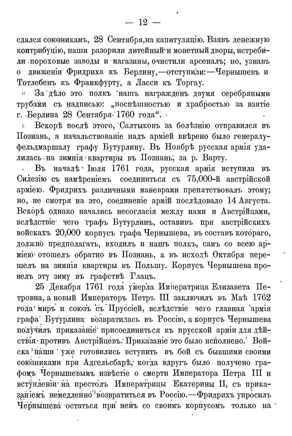 Въ ' 1юля 1761 года, русская apMi51 вступила въ