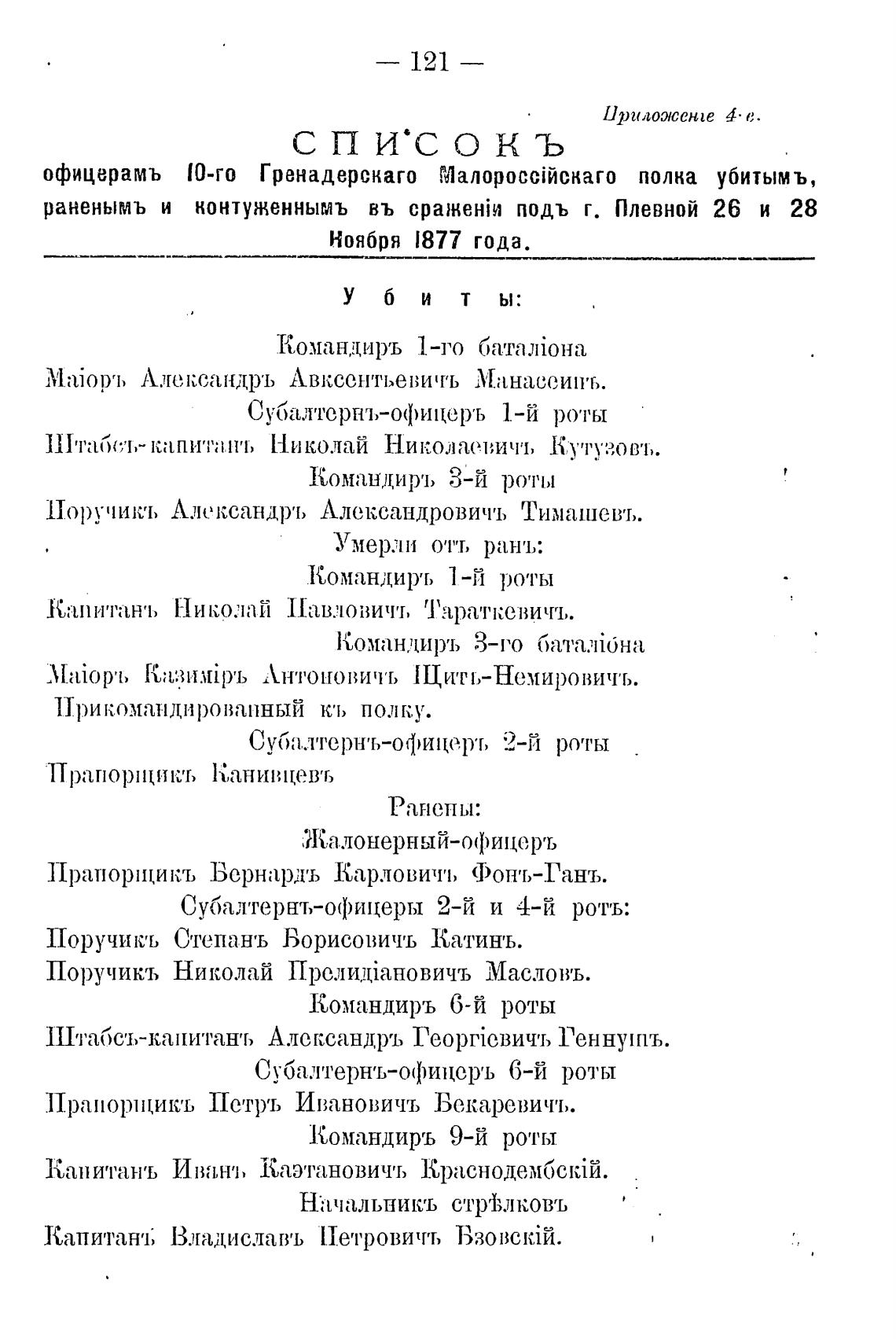 офицерамъ [О-го Гренадерскаго полна убитымъ,