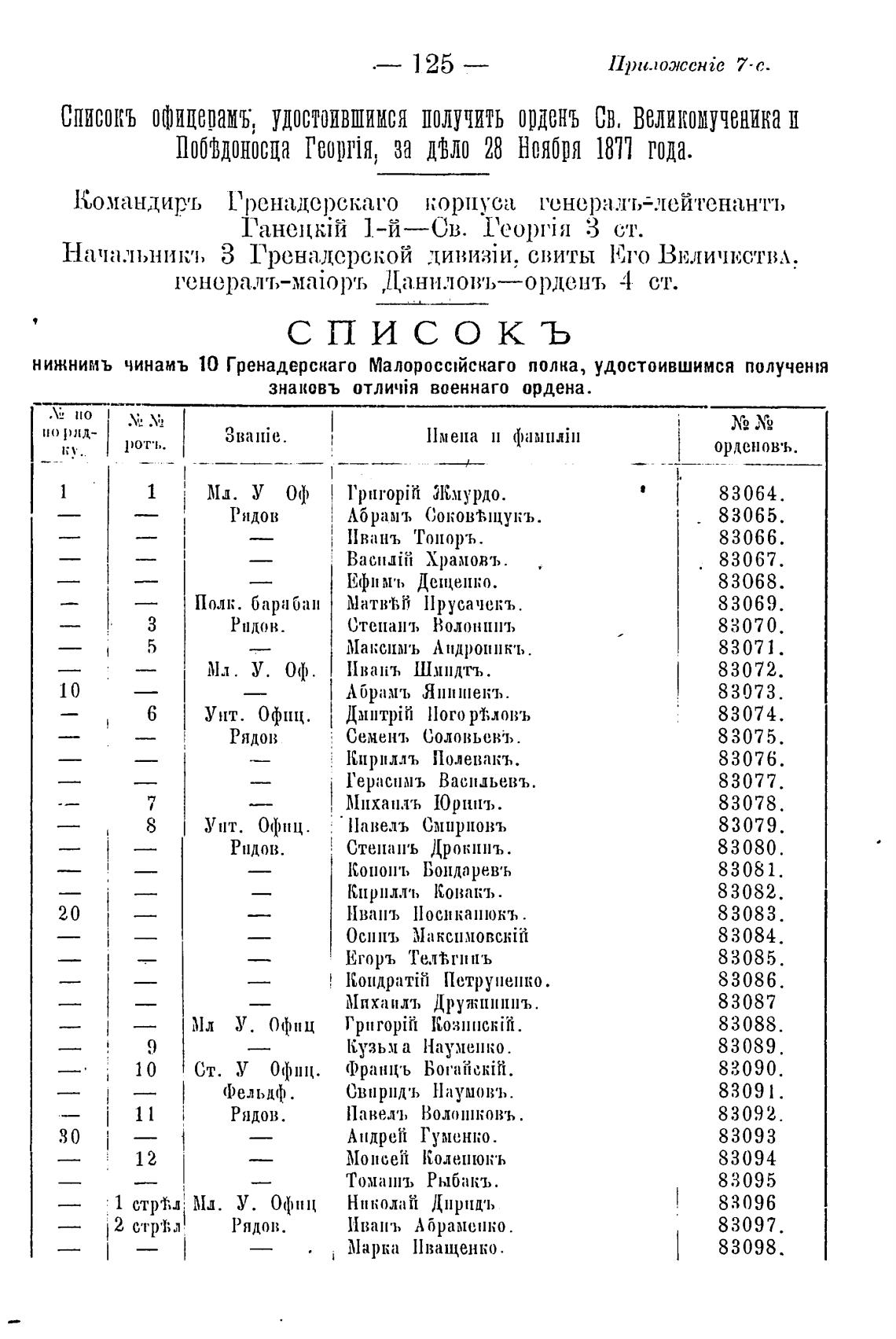 нижнимъ чинаиъ 10 Гренадерскаго Малоросийскаго полка, удостоившимся получен:я