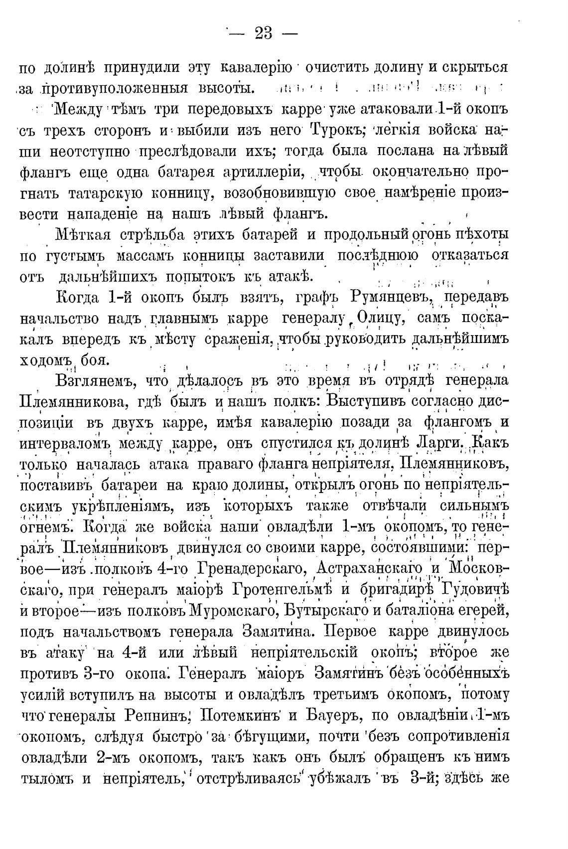 Когда 1-й окопъ быль взять, графъ Румянцевъ, передавъ