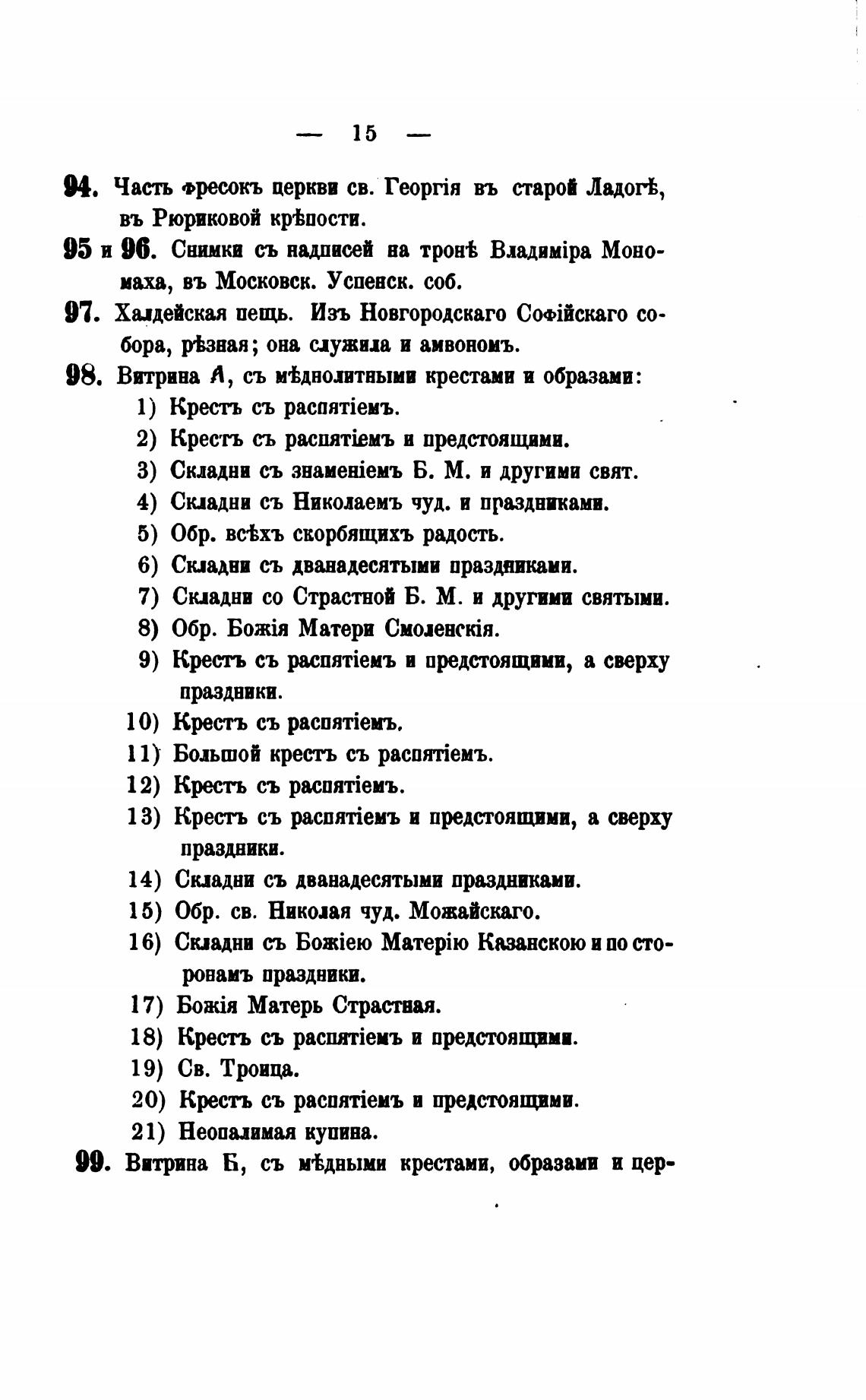 99. Витрина Б, съ м%дными крестами, образами и цер-