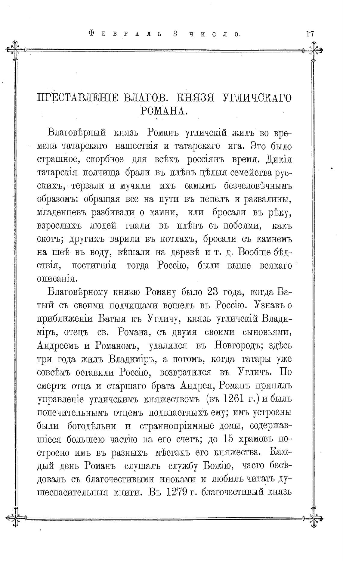 Благовфрный князь Романь угличибй жиль во вре-