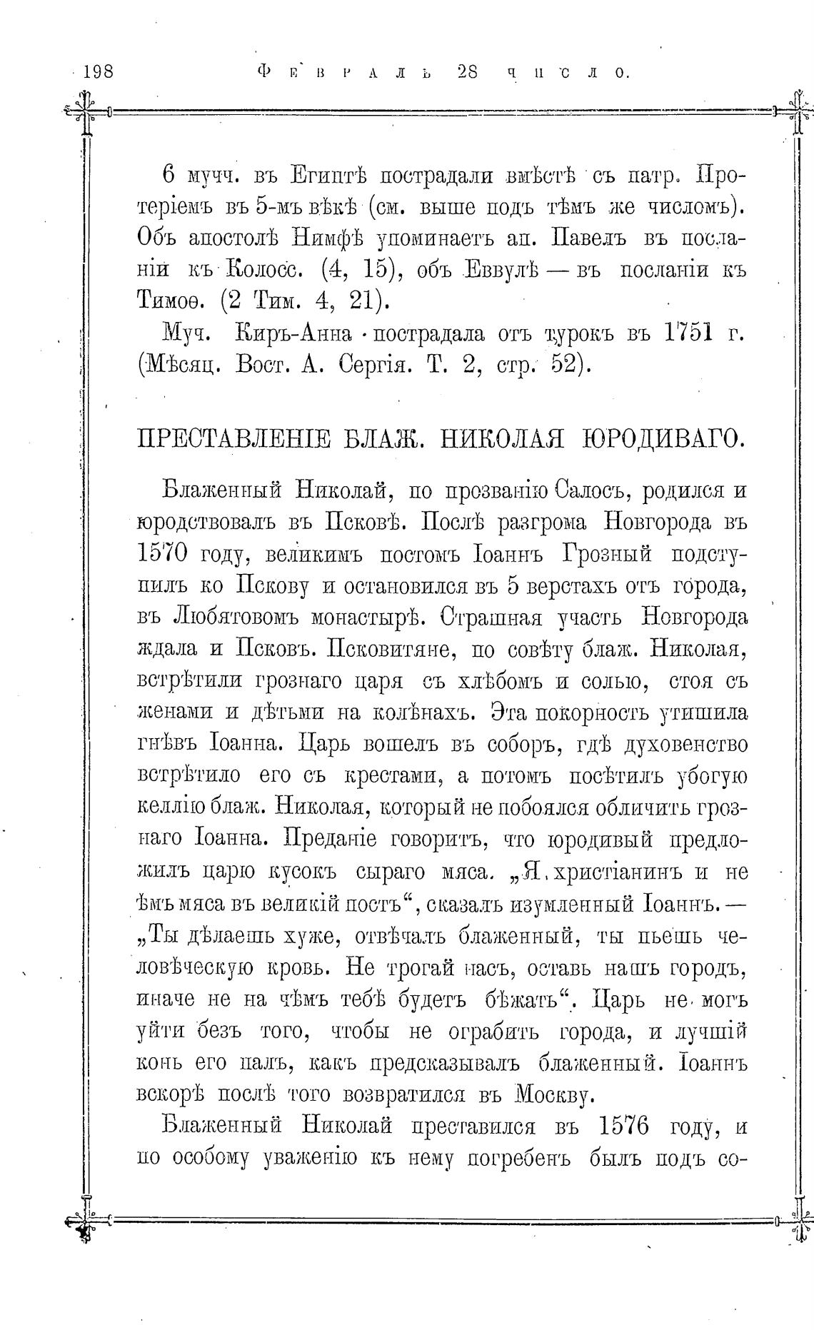 ПРЕСТАВЛЕНШ БЛАЖ. НИКОЛАЯ ЮРОДИВАГО.