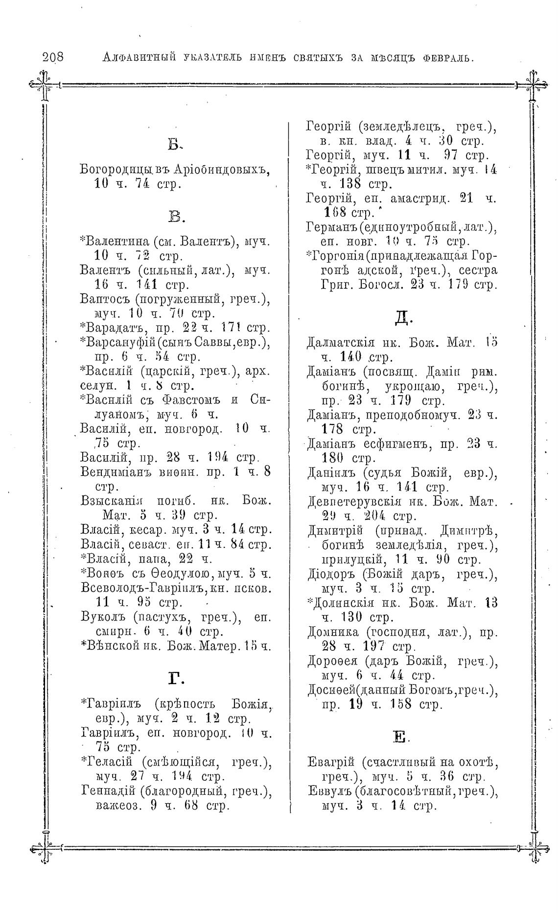 АЛФАВИТНЫЙ УКАЗАТЕЛЬ имПнъ СВ.ЯТЫХЪ ЗА МЈСЯЦЪ ФЕВРАЛЬ.