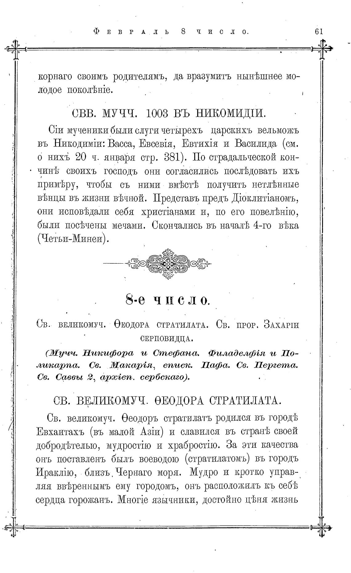 Св. впликомуч. ОЕОДОРА СТРАТИЛАТА. Св. ПРОР, ЗАХАРIИ