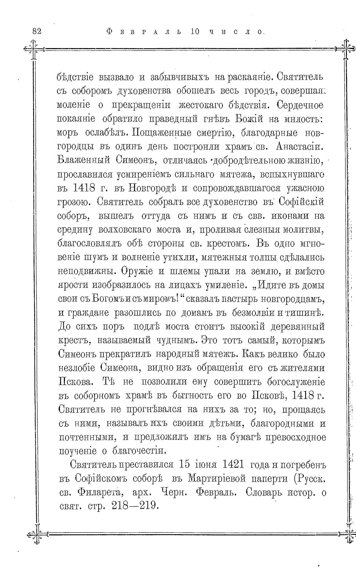 св. Филарета, арх. Черн. Февраль. Словарь. истор. о