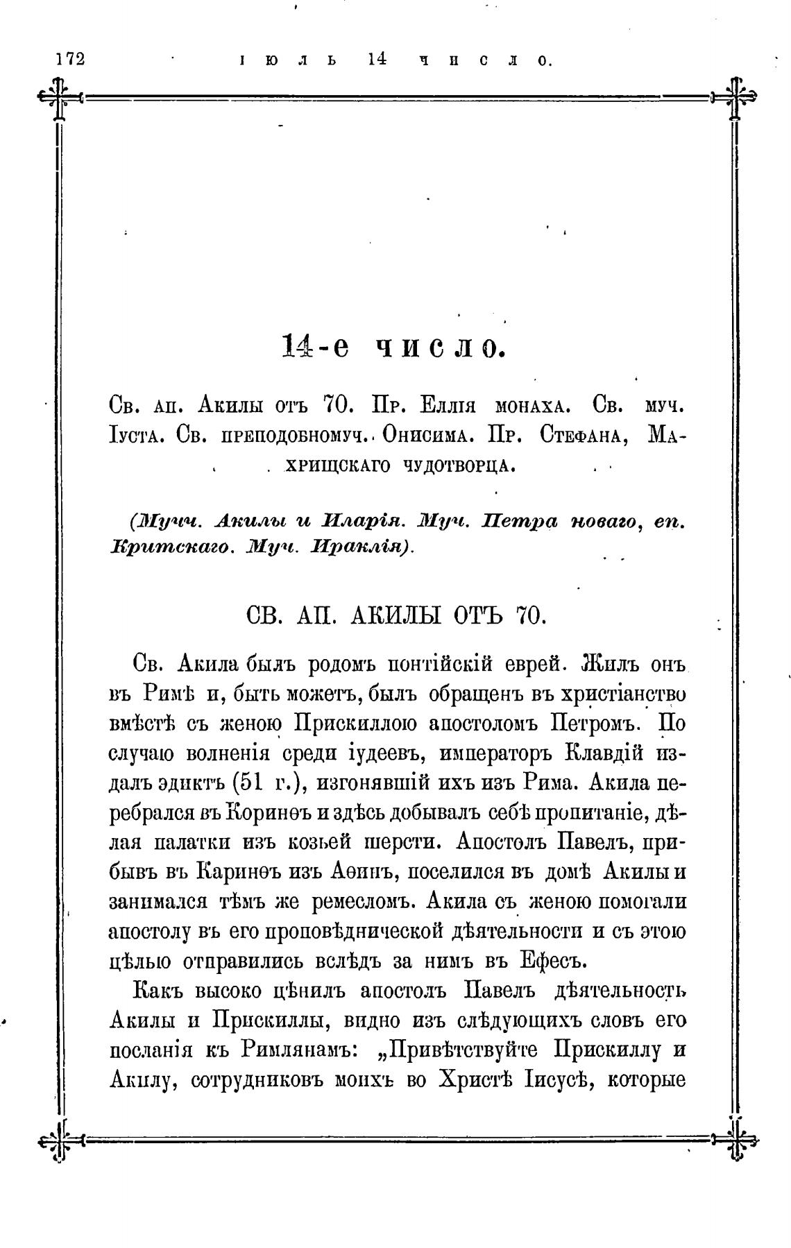 Св. Акила быль родомъ еврей. Жиль онъ