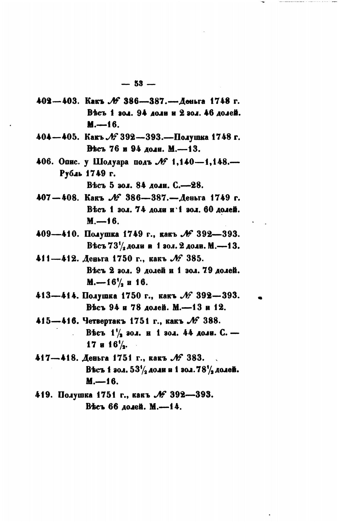 —412. Девьга 1750 г., какъ 385.