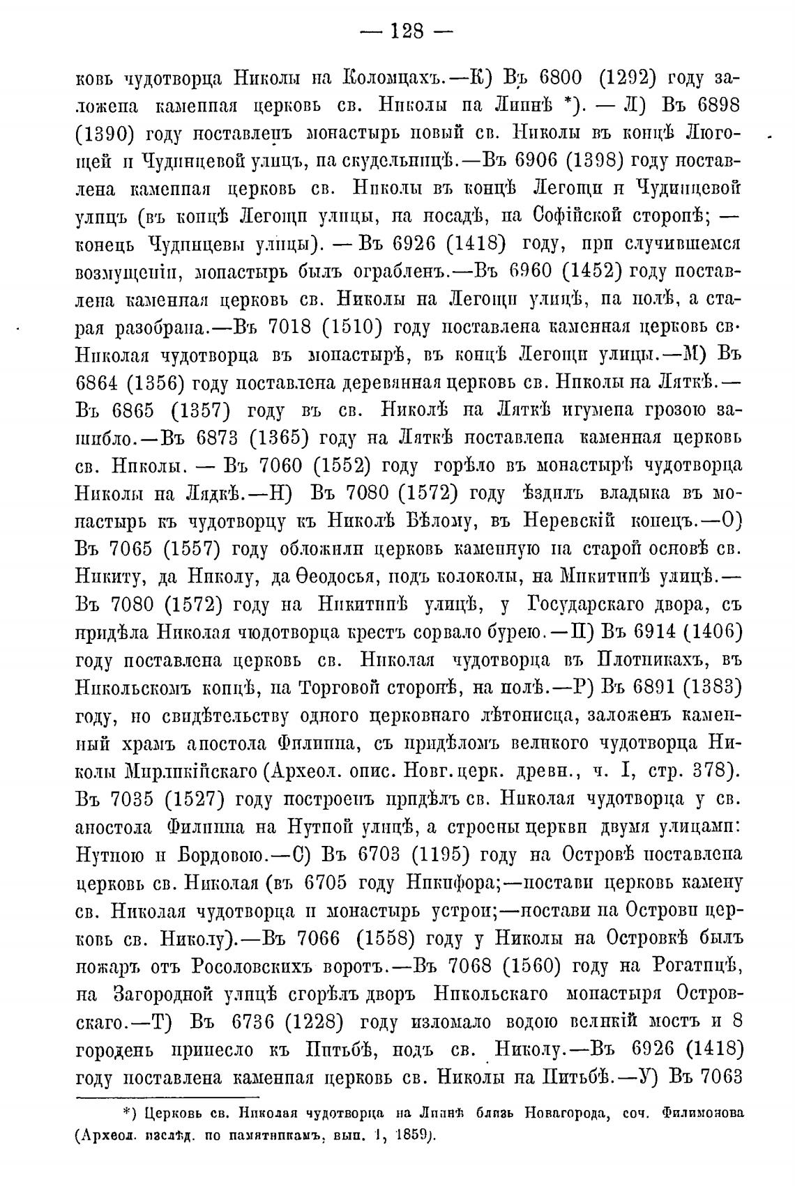 году поставлена каменпая церковь св. Николы на Пптьб'Ь.—У) Въ 7063