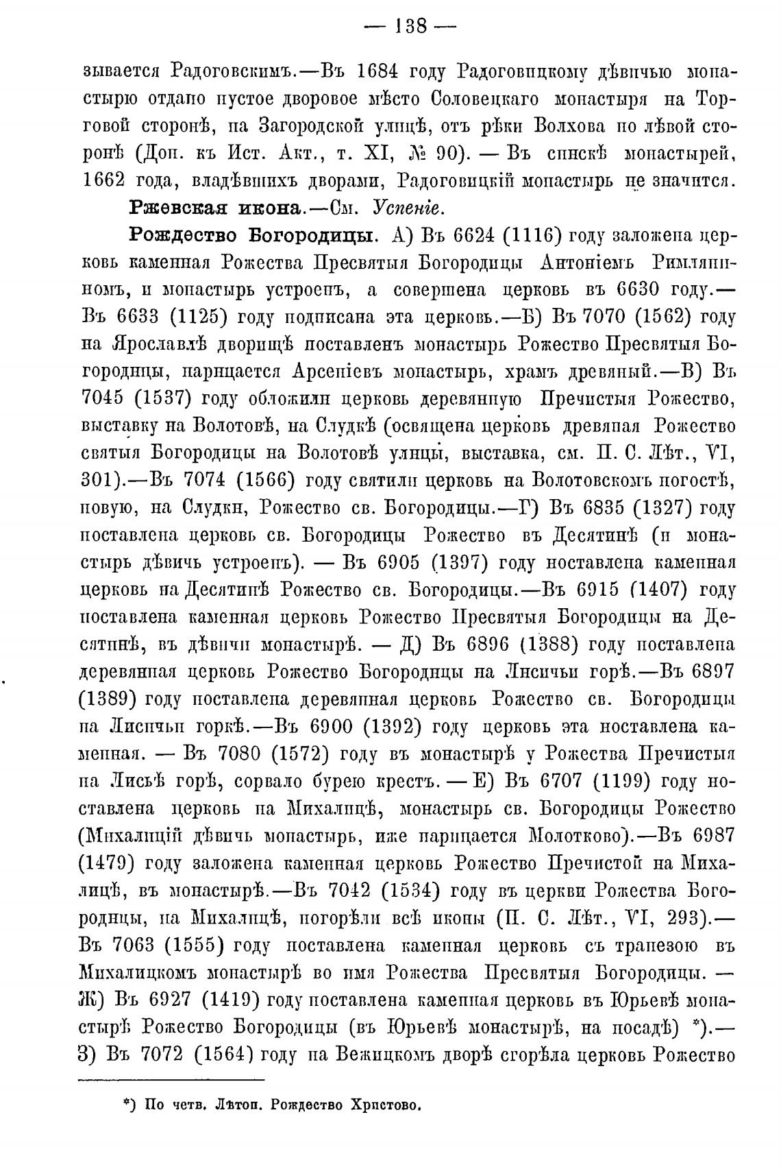 Рождество Богородицы. А) Въ 6624 (1116) году заложена цер-