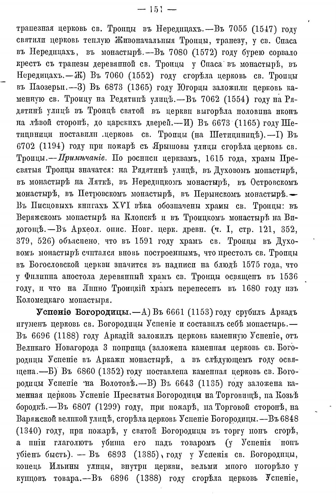 Нередицахъ.—Ж) Въ 7060 (1552) году сгоуђла церковь св. Троицы
