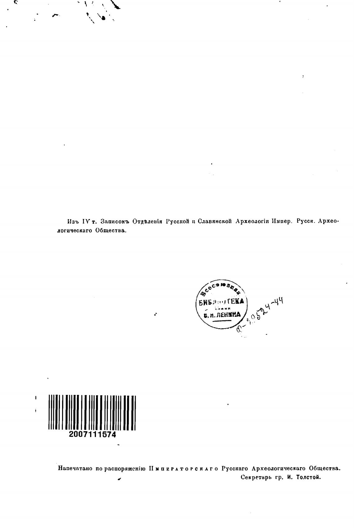 Напечатано по II м и Е то Р с к А го Русскаго Археологического Общества.