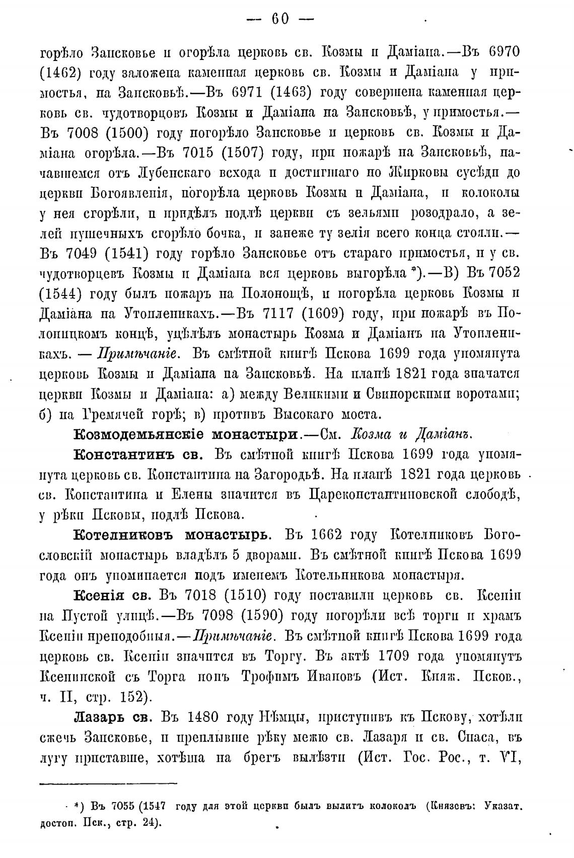 Въ 7008 (1500) году погщйло Запсковье и церковь св. Козны Да-