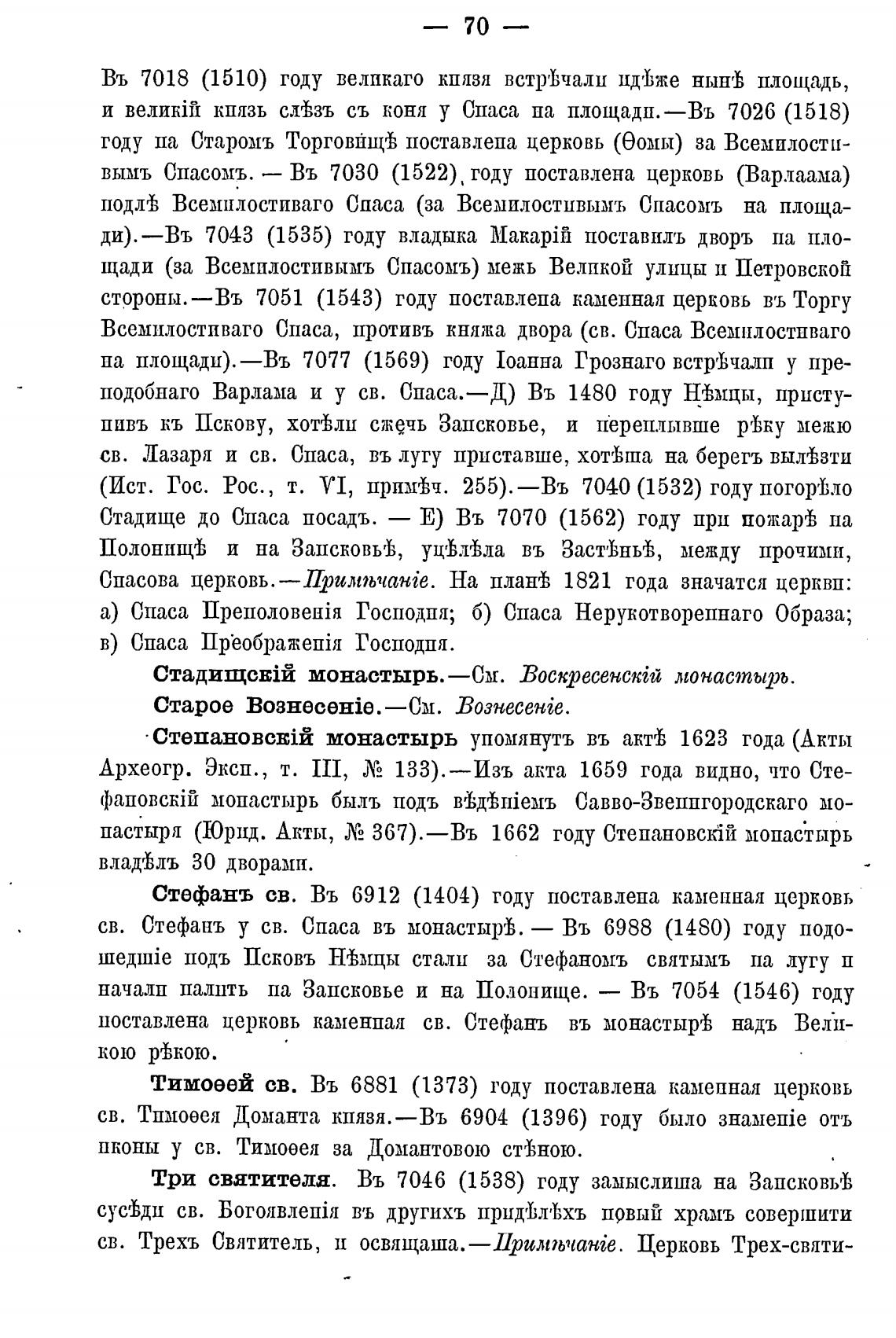 Стадище до Спаса посадъ. — Е) Въ 7070 (1562) году при пожар'ђ па