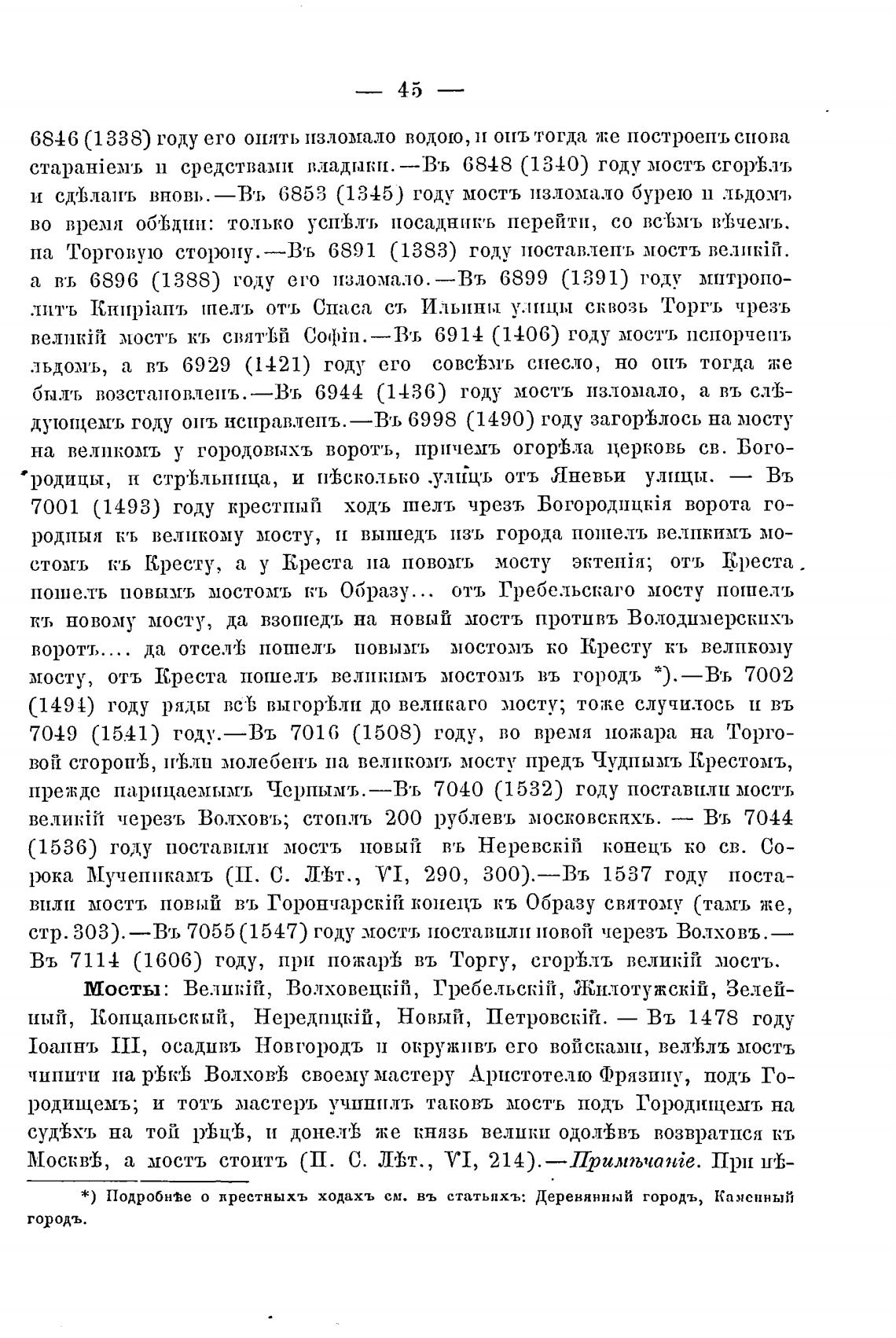 мосту, отъ Креста пошелъ великимъ мостом'ь въ городь *).—В'ь 7002